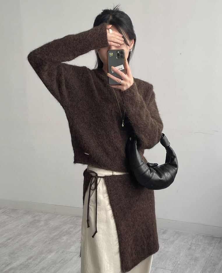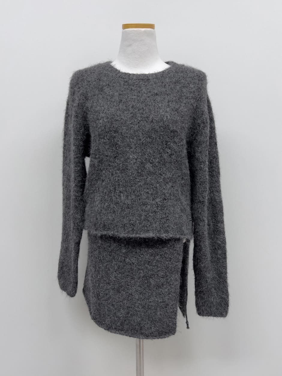 [Skirt SET] Mohair Layered Knit Two-Piece