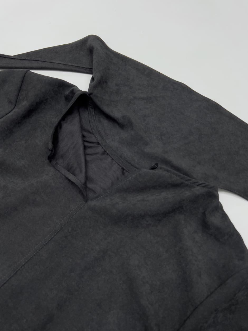 Suede High Neck Tie Blouse