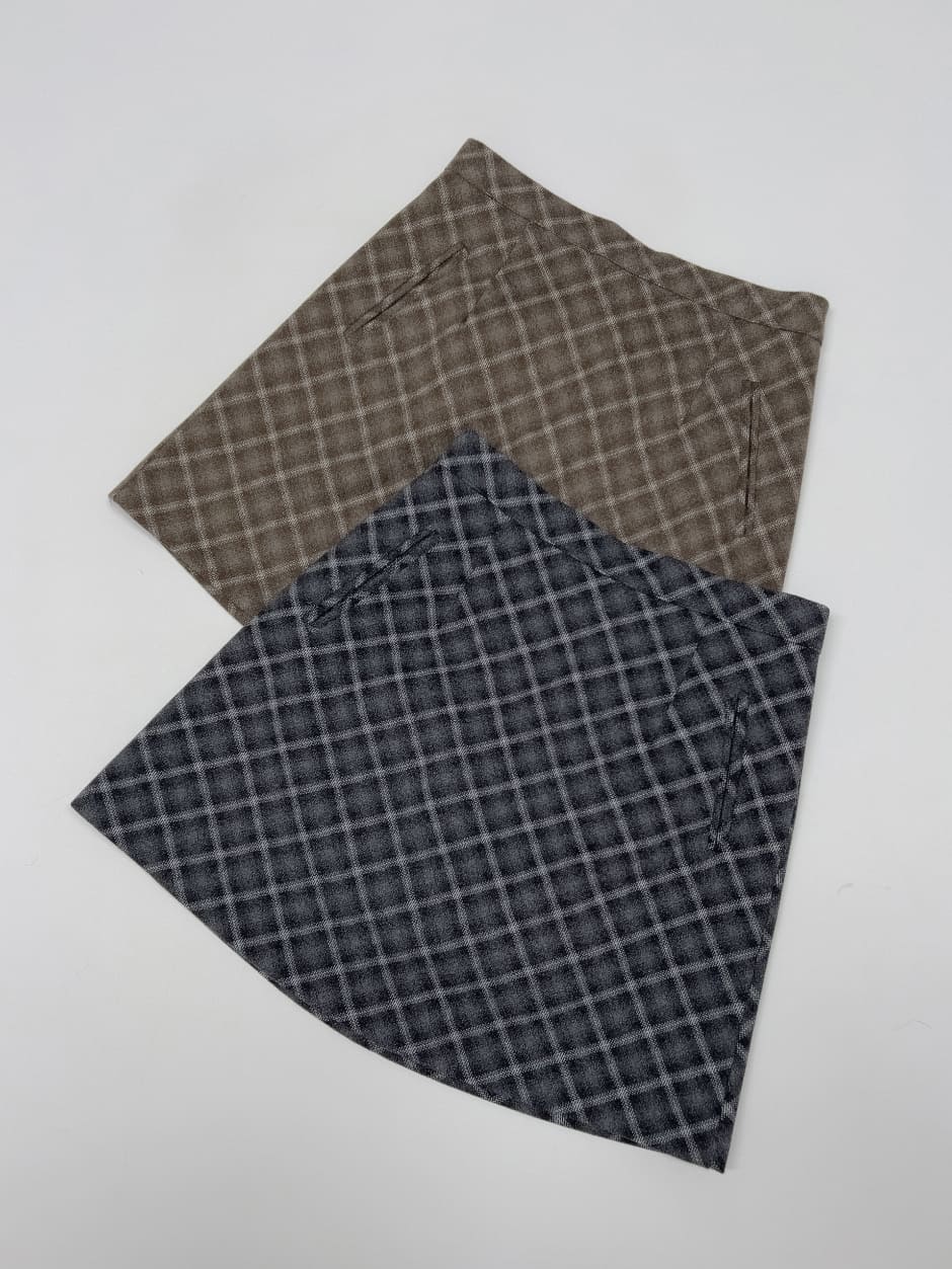 Tartan Check A-Line Midi Skirt (2C)