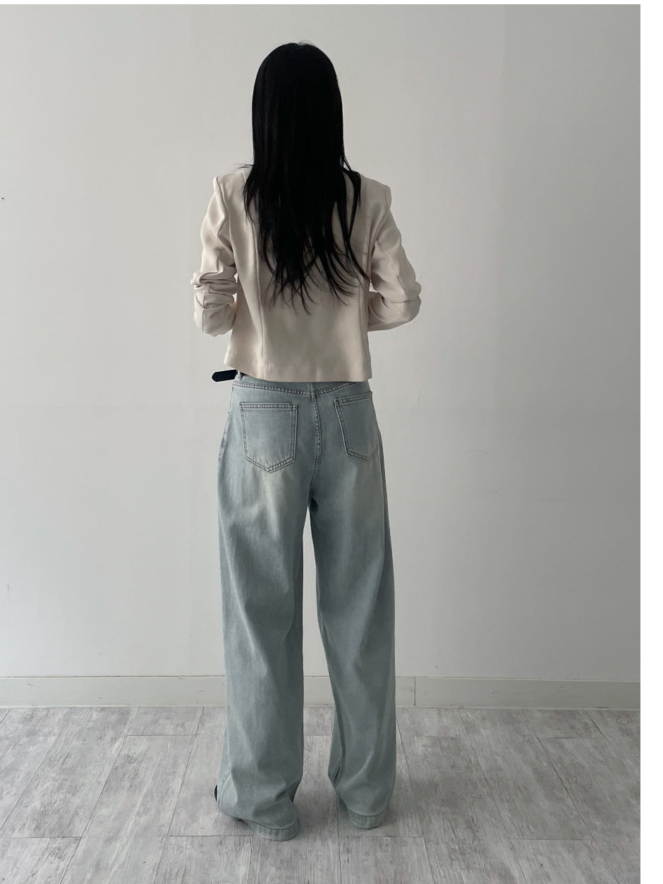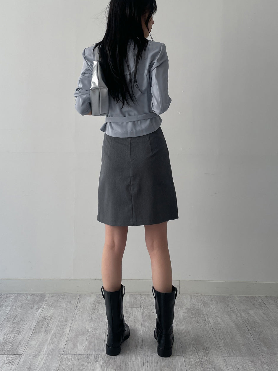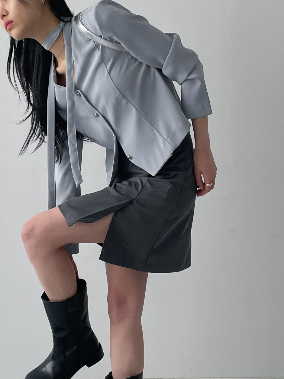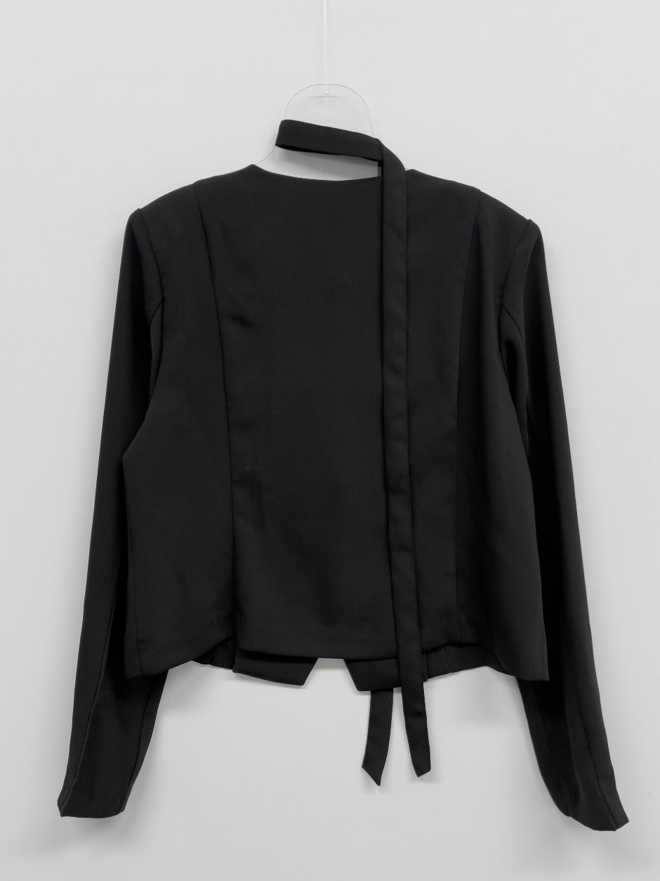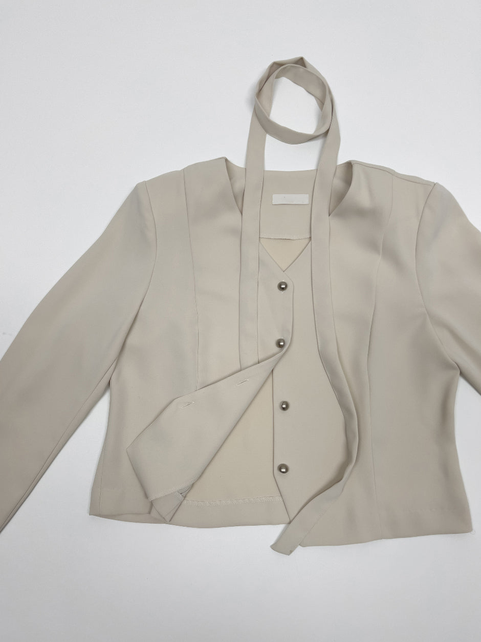[Tie SET] Padded V-neck Pin Tuck Blouse