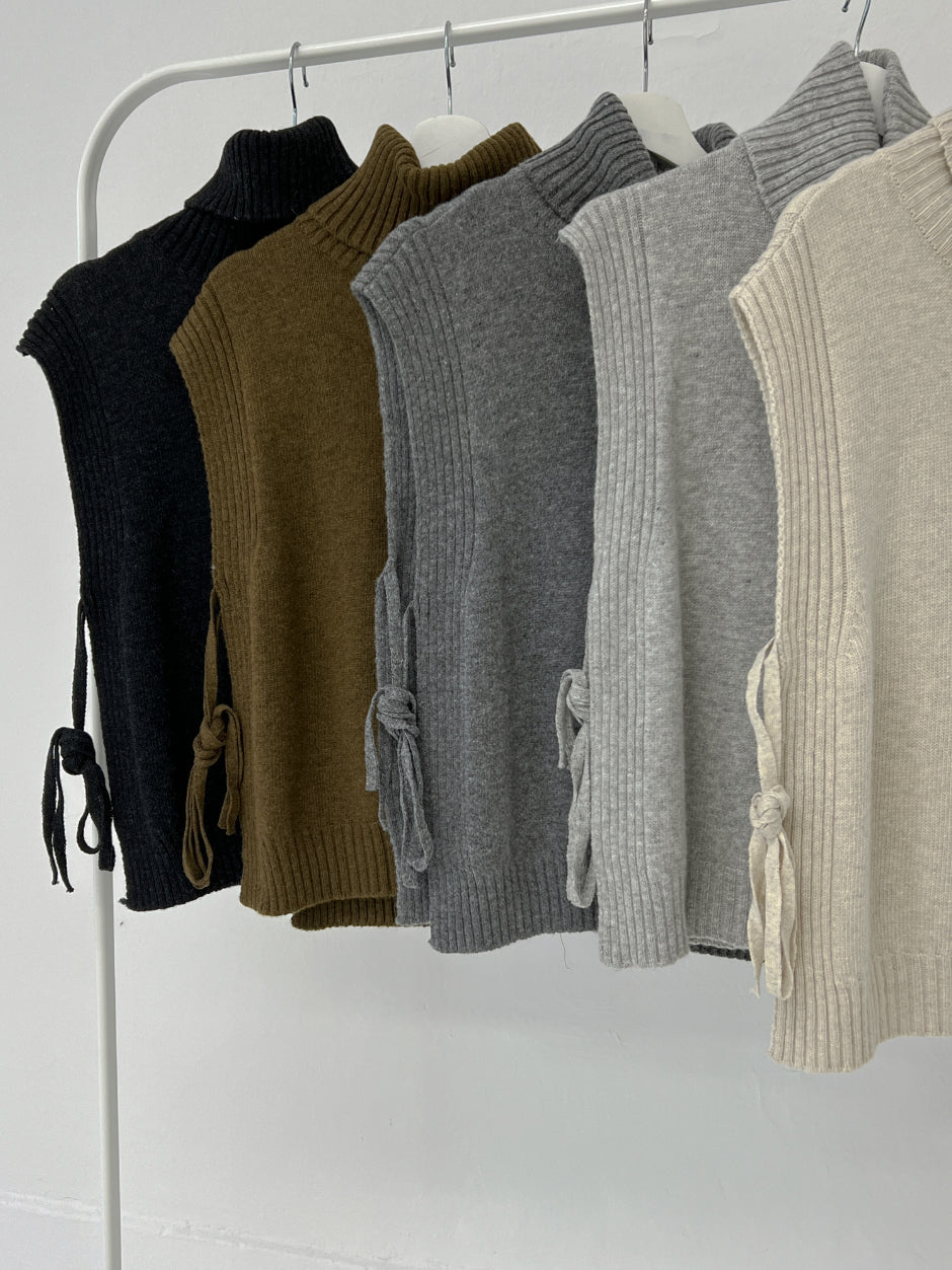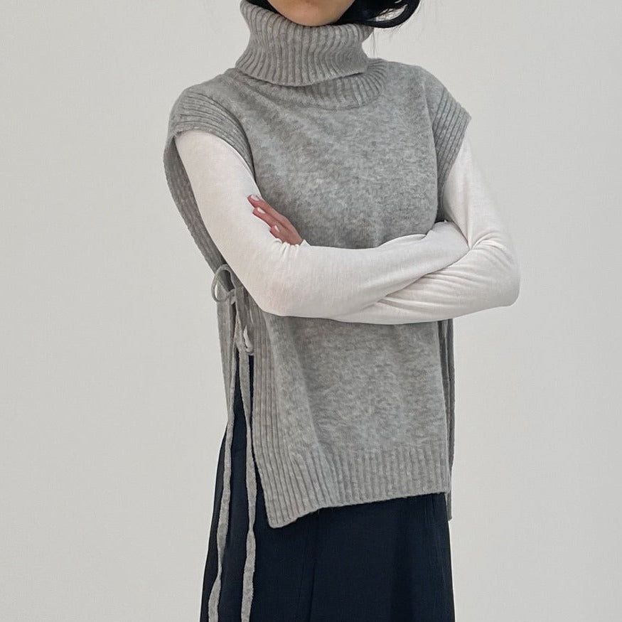 タートルネックウールススリットベスト