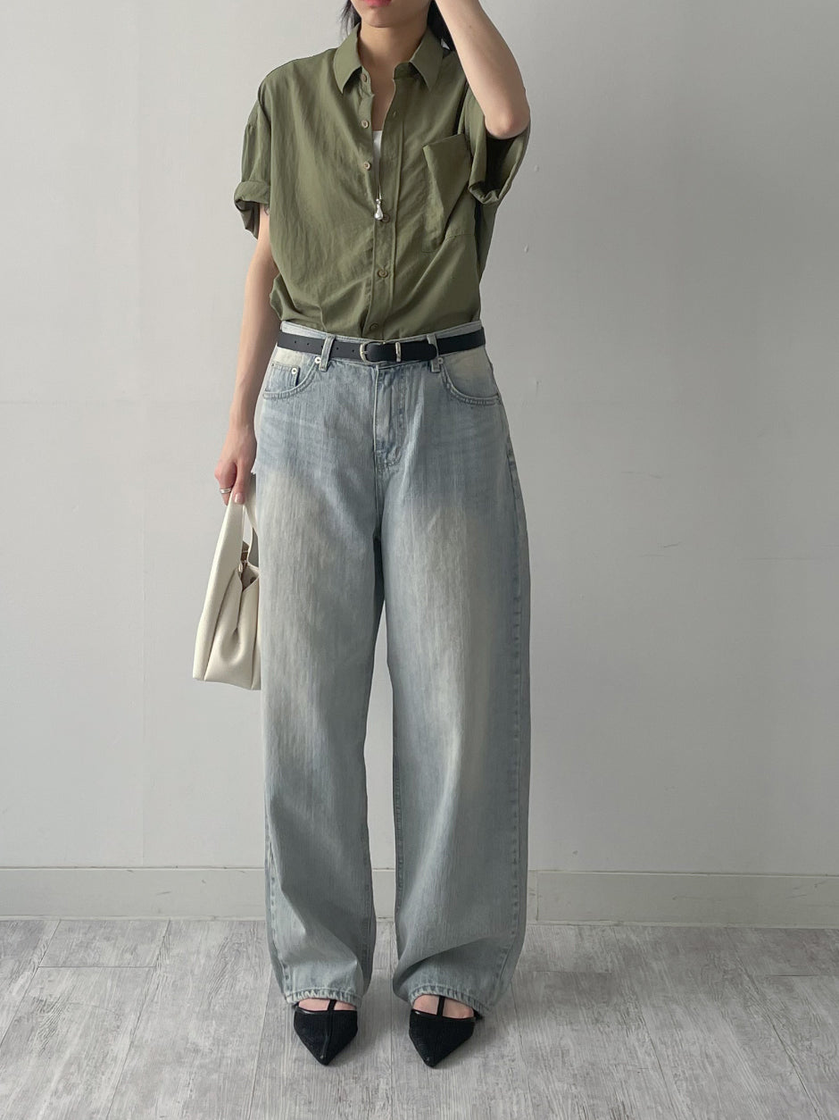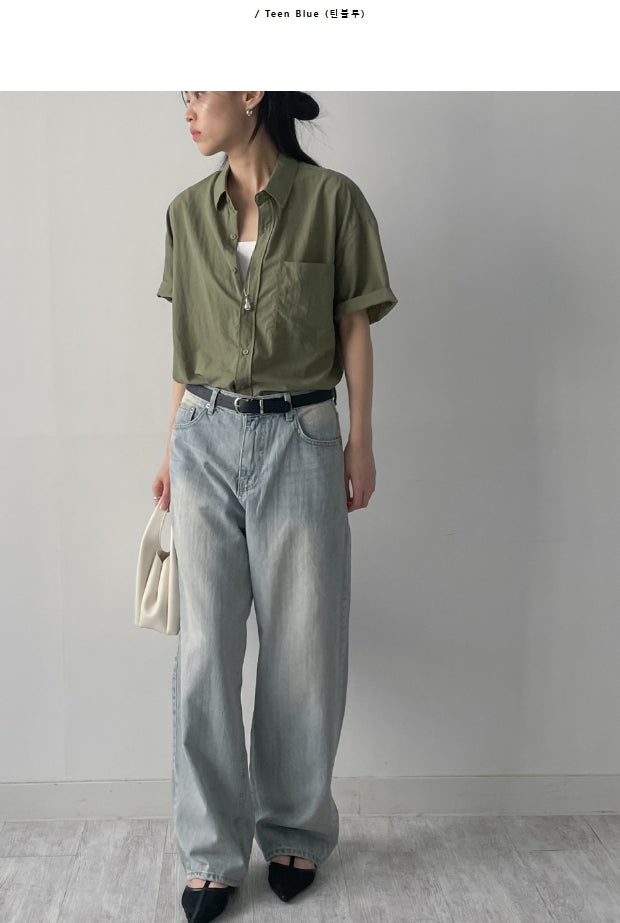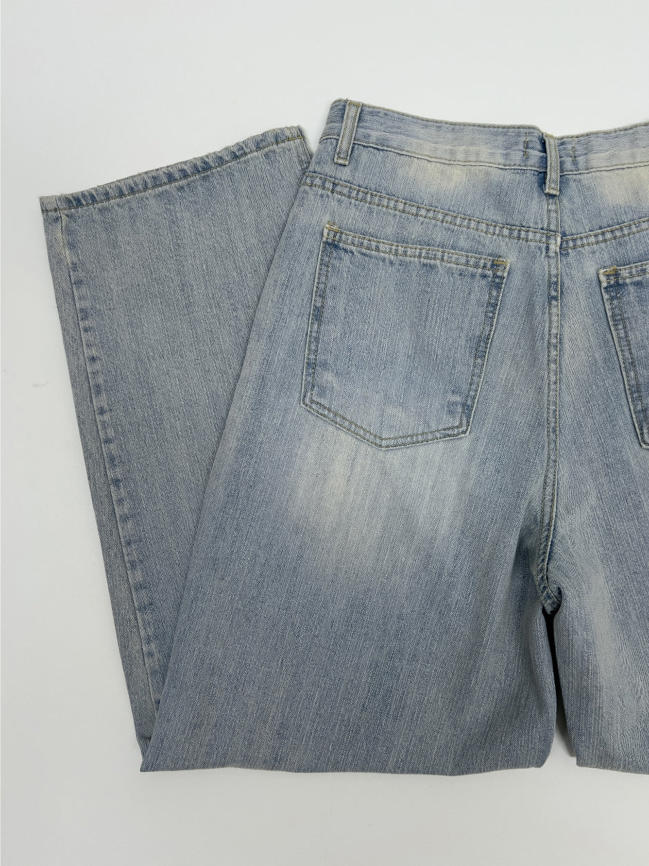 [男女兼用]418ティーンブルーワイドデニムパンツ