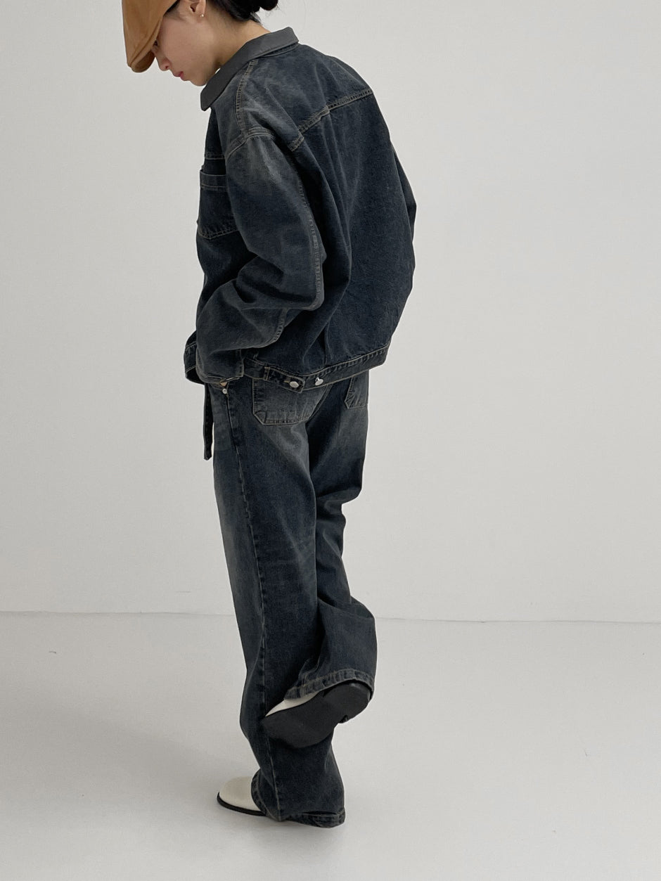 [男女兼用]ヒゲ加工オーバーフィットデニムトラッカージャケット