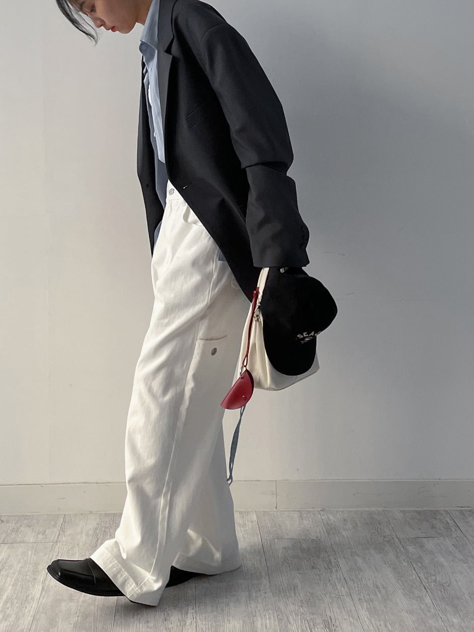 -169cm / 51kg / top 55(S) / bottom 27 / shoes 240mm / White, Khaki Brown Sサイズ着用