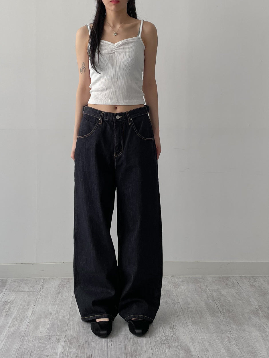 [unisex/non-fade] Selvage Visor Wide Denim Pants