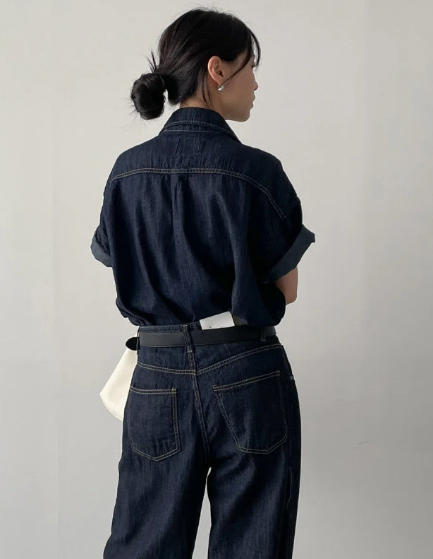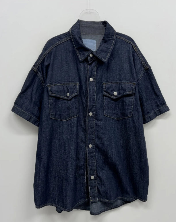 [unisex/summer yarn] Fred denim overfit short sleeve shirt