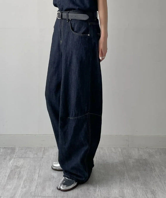 [男女兼用/サマーヤーン]フレッドピンタックワイドデニムパンツ