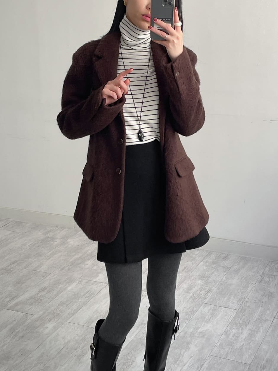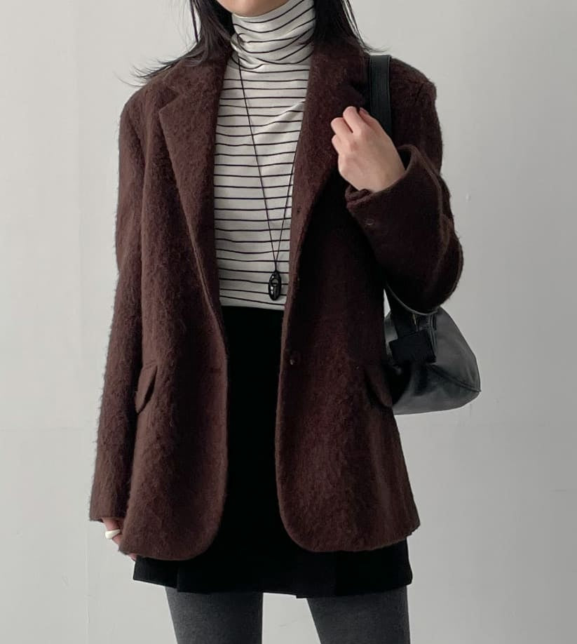 [wool 50%] Photo Hairy Single Loose Fit Jacket