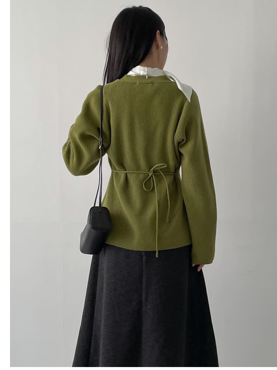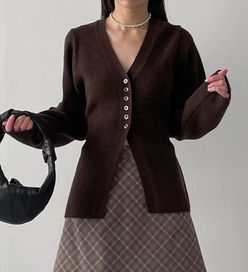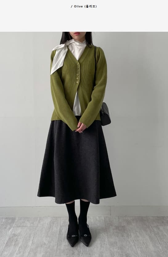 [wool50%] Glass Wool V-Neck Cardigan