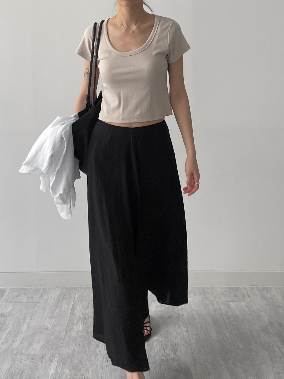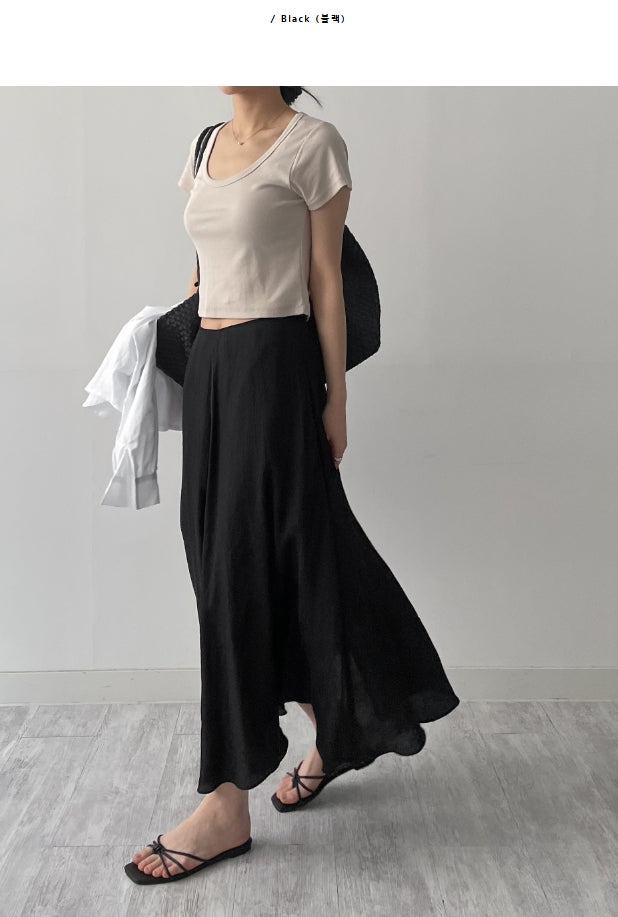 Wrinkle Flare Long Skirt
