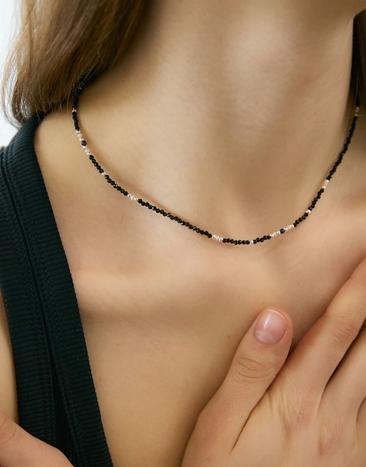 -Silver925, Black glass, Navy lapis, Ash freshwater pearls 100%