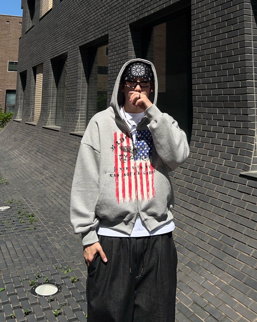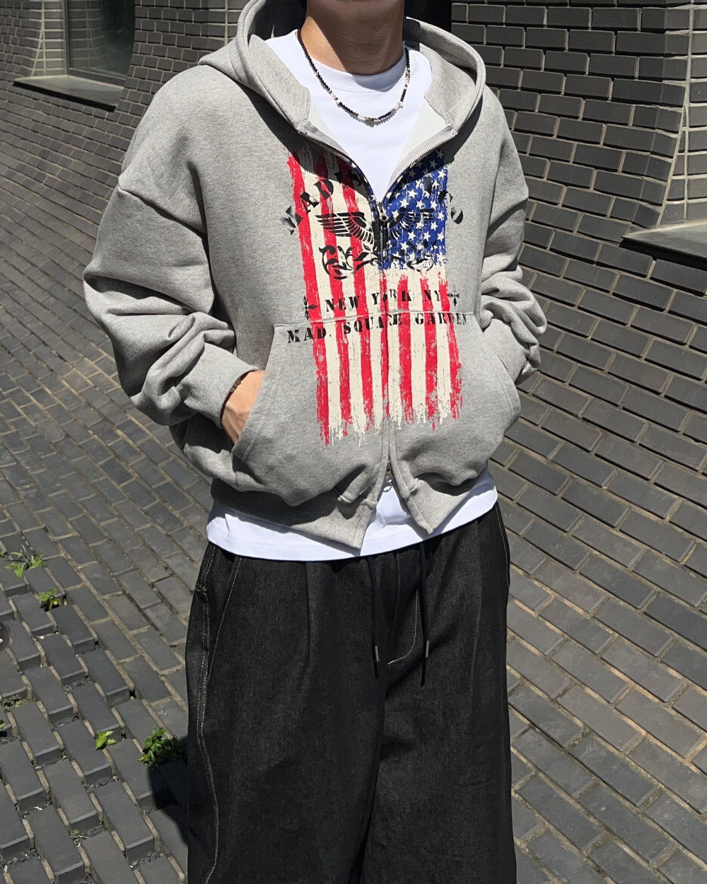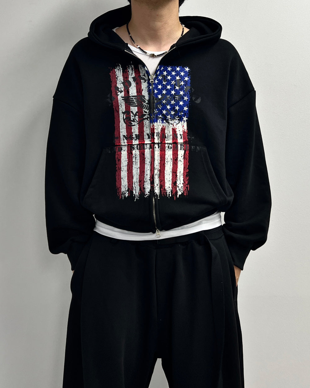 クロップ星条旗フードジップアップ