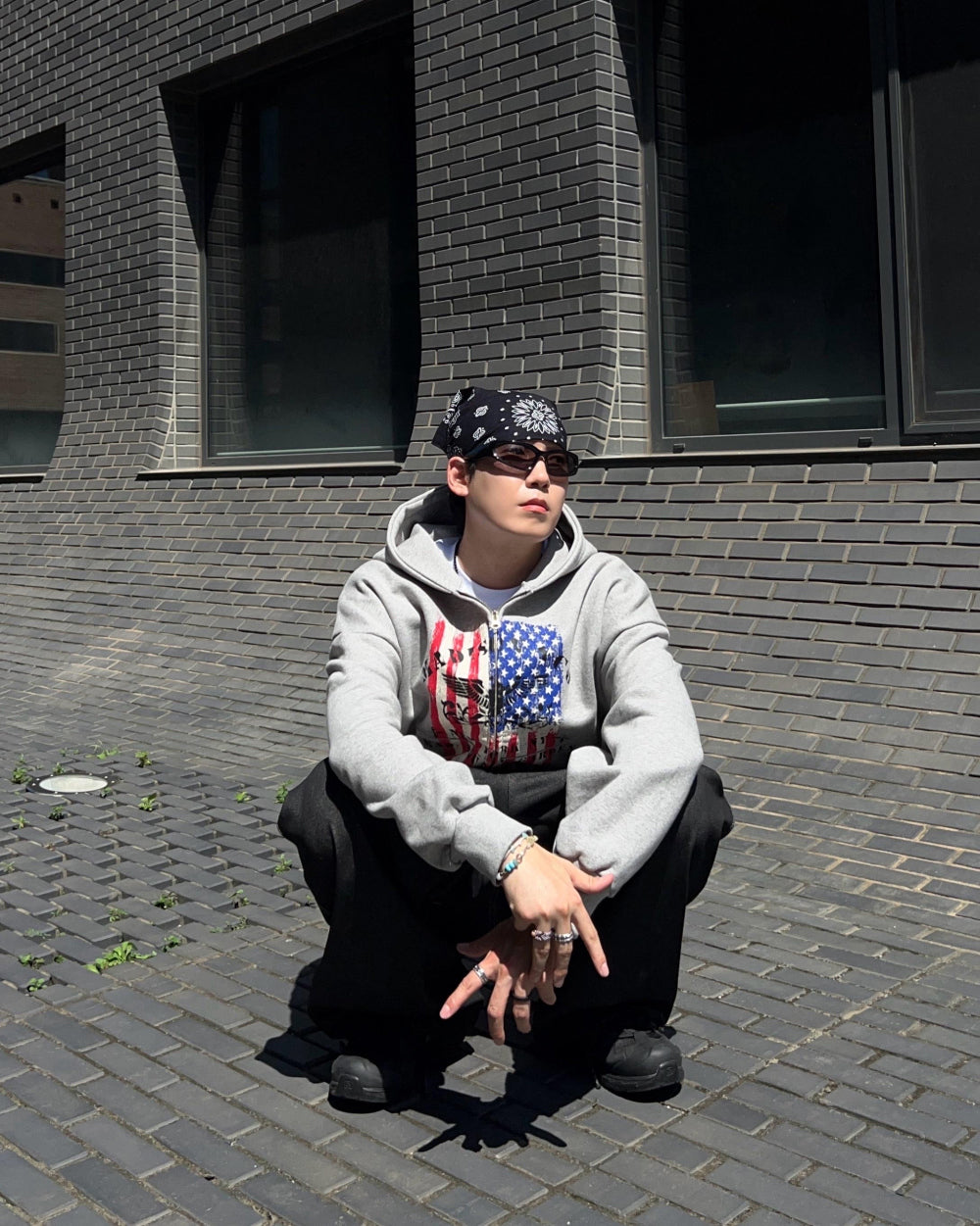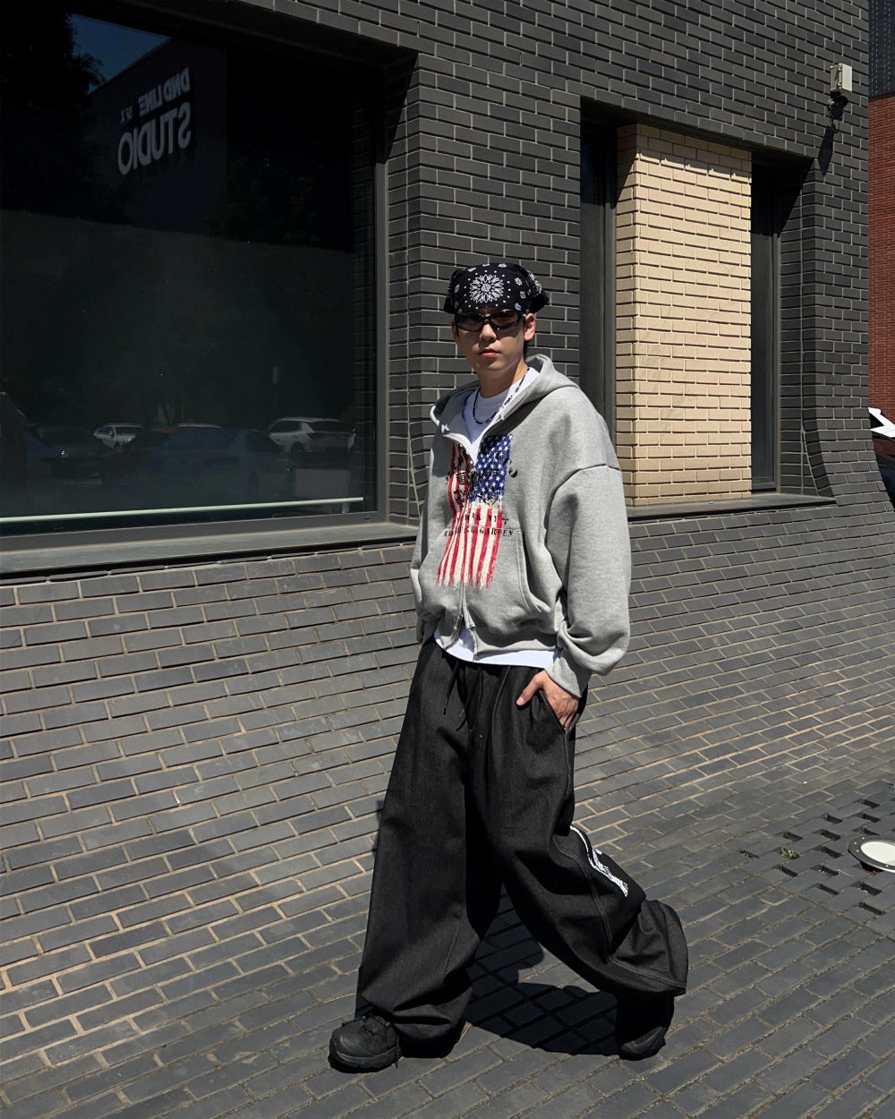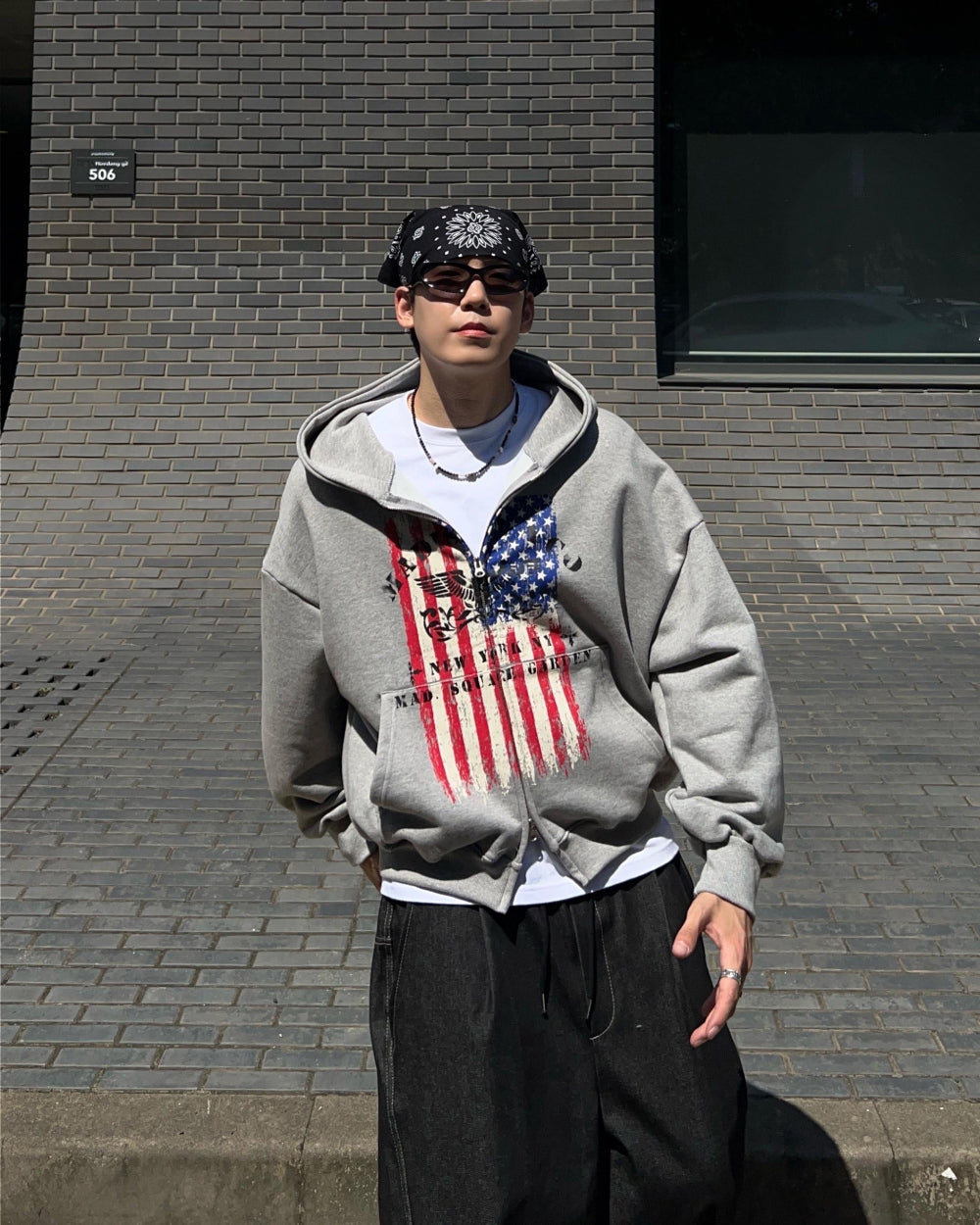 クロップ星条旗フードジップアップ