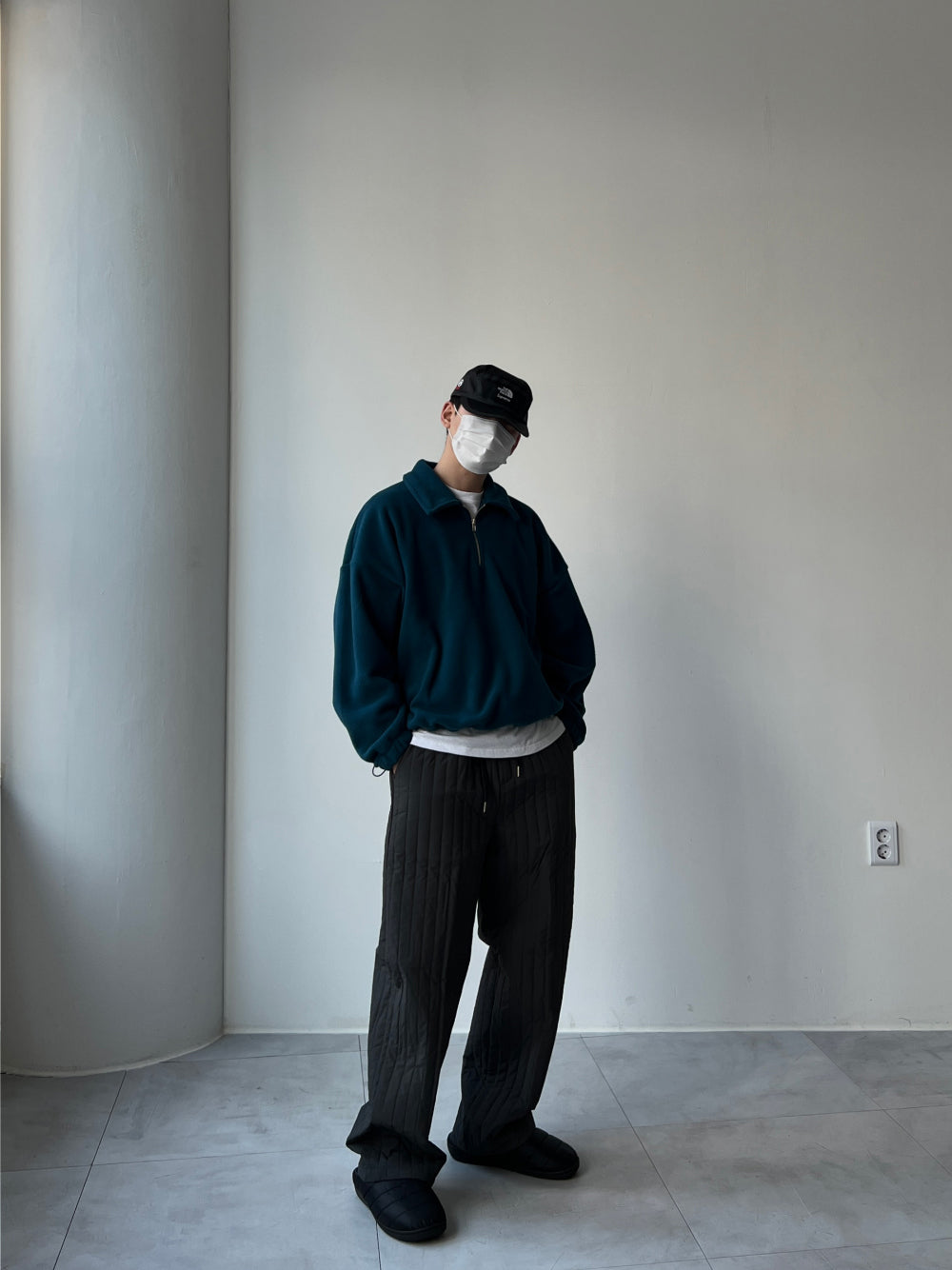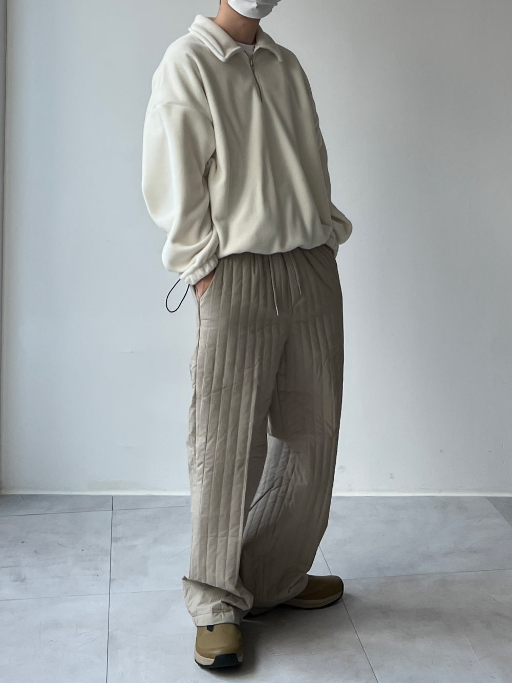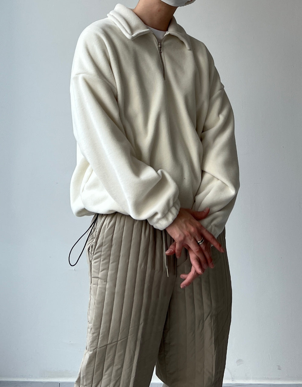 フリース襟付きハーフジップアップ