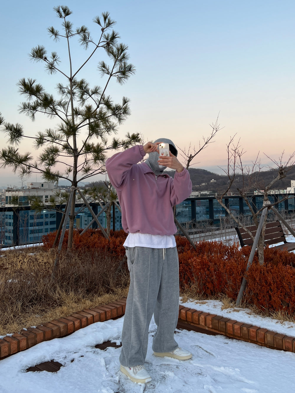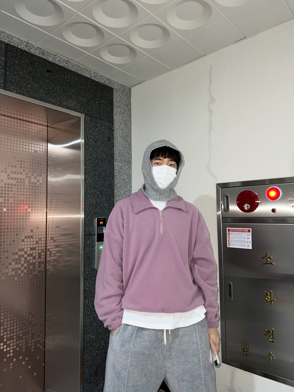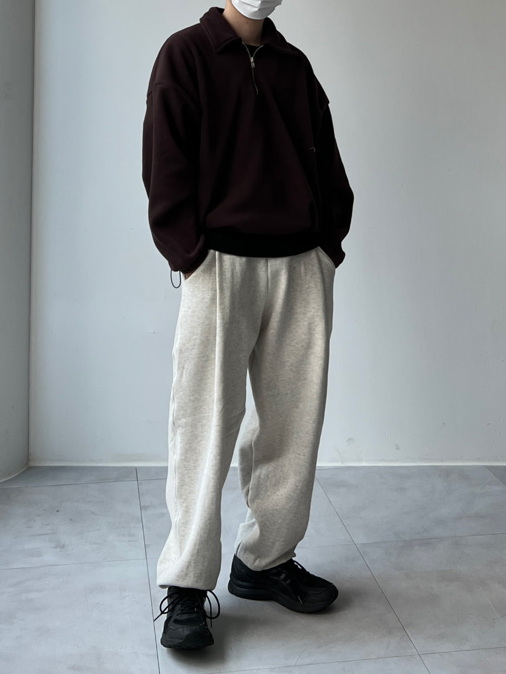 フリース襟付きハーフジップアップ