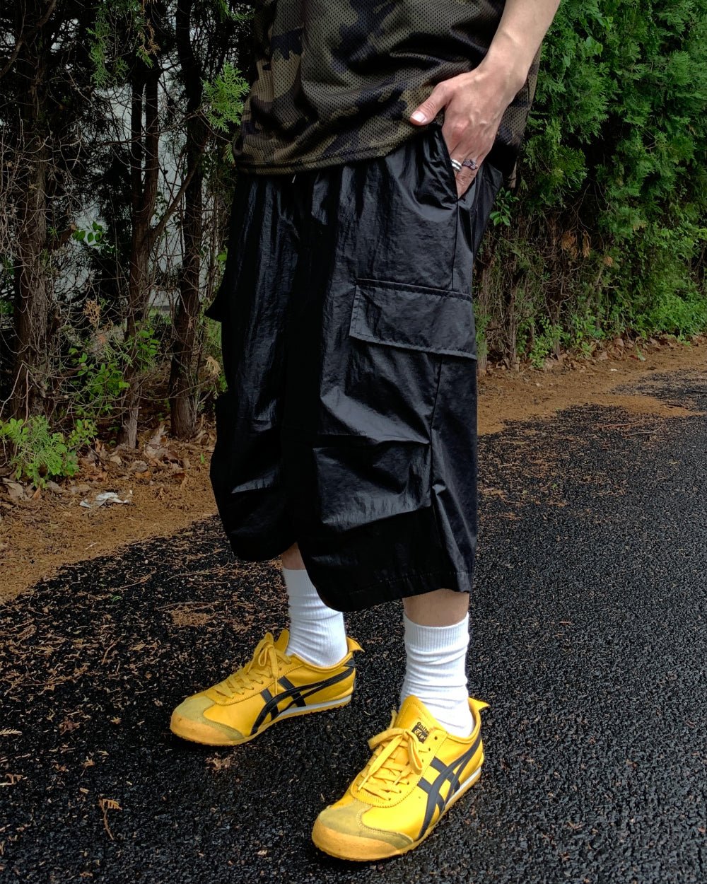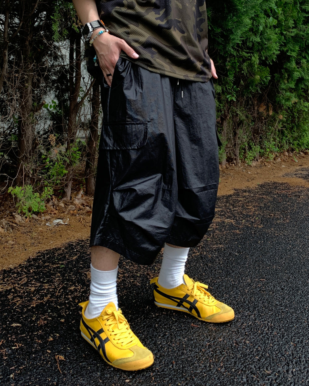 -ONE SIZE (ウエスト(ゴム)66-108 ヒップ- 股上40 股下25 もも周り78 裾周り68 総丈65)