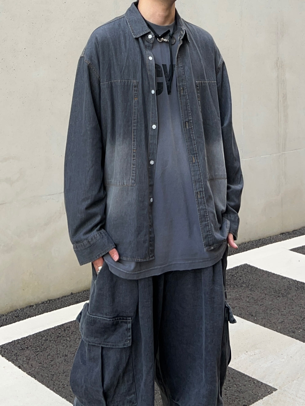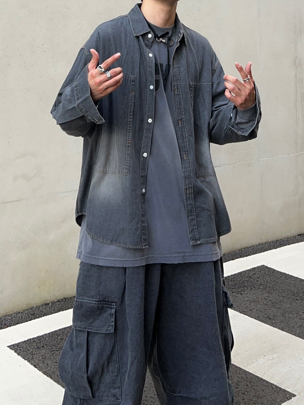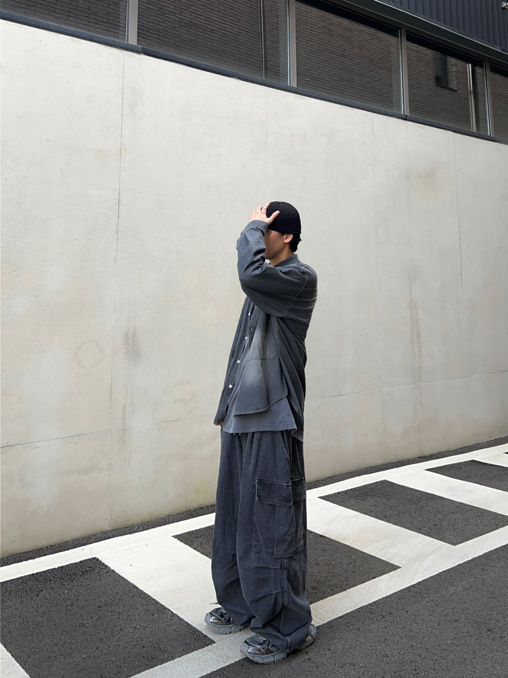 グラデーションウォッシュドデニムシャツ