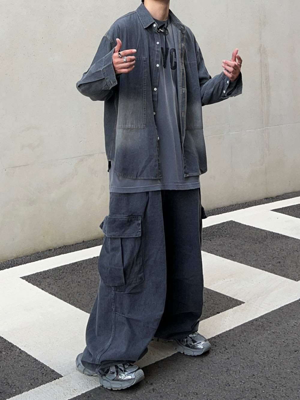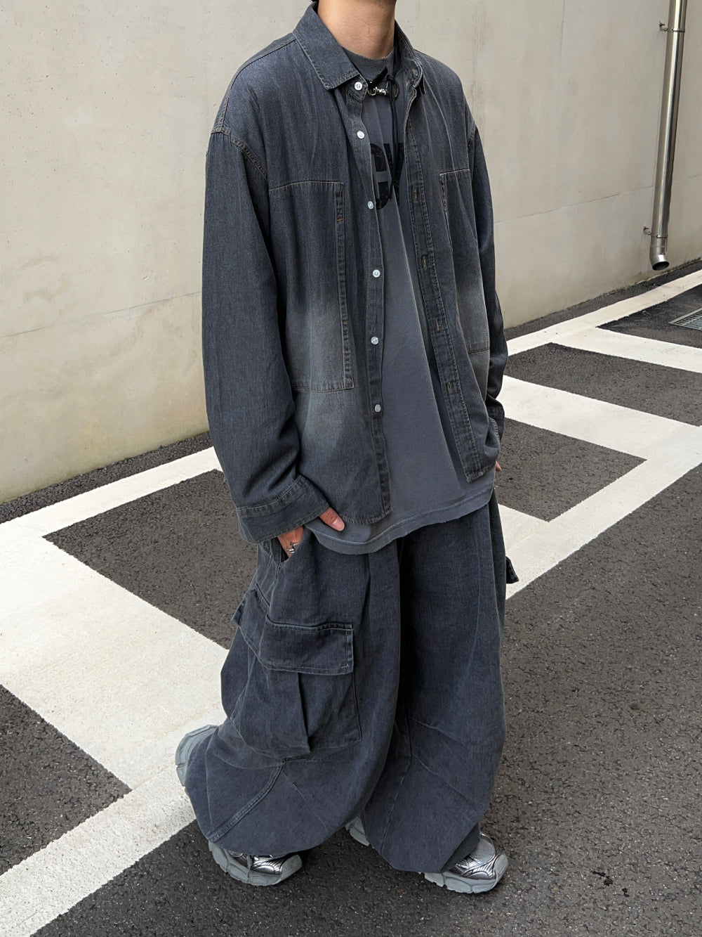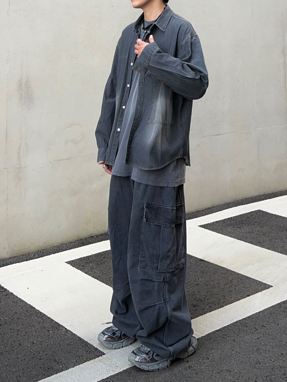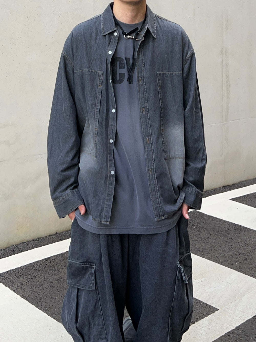 グラデーションウォッシュドデニムシャツ