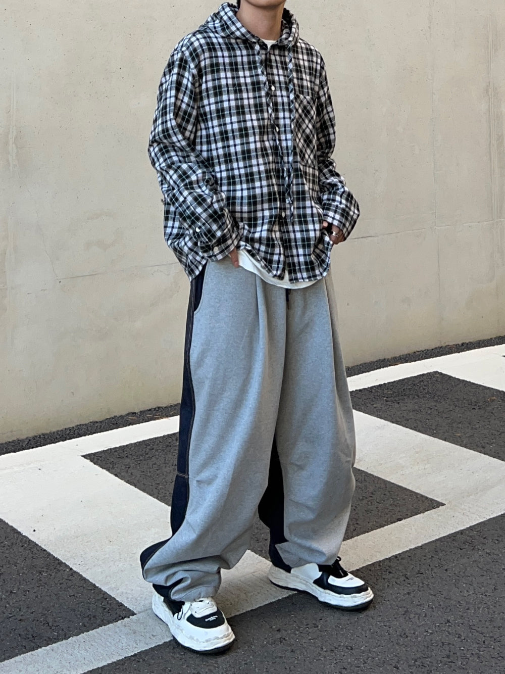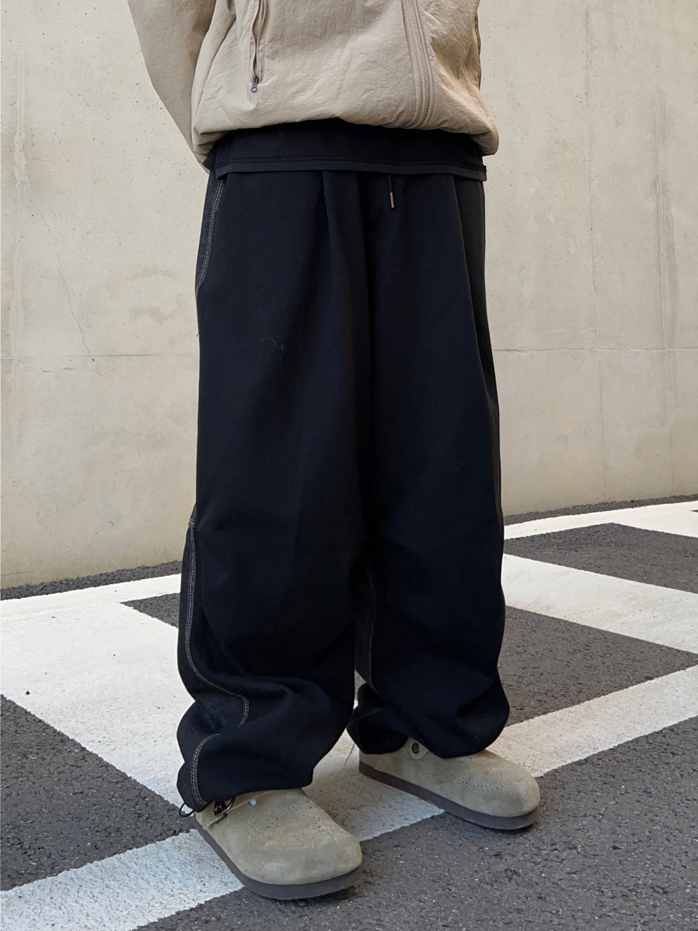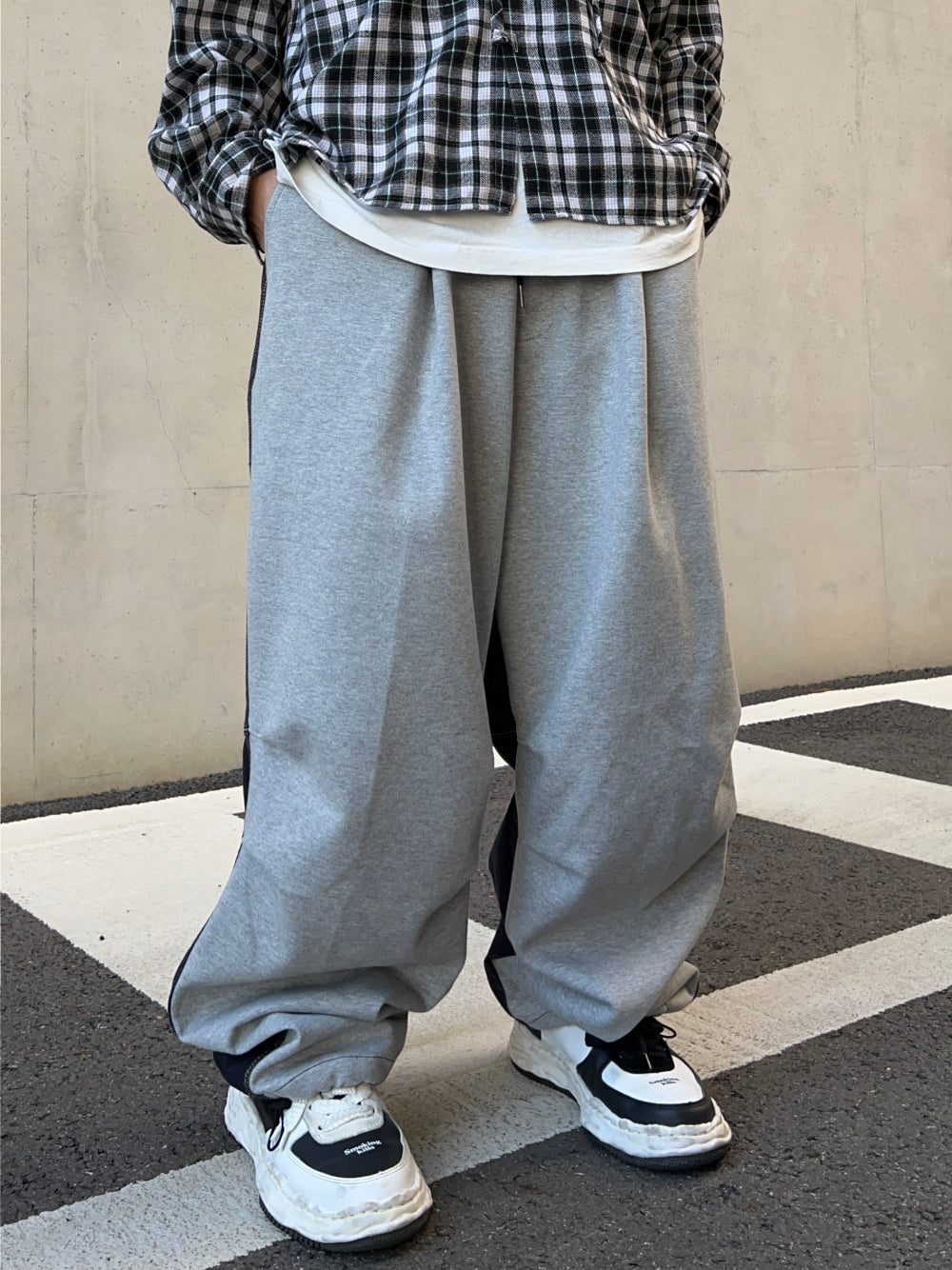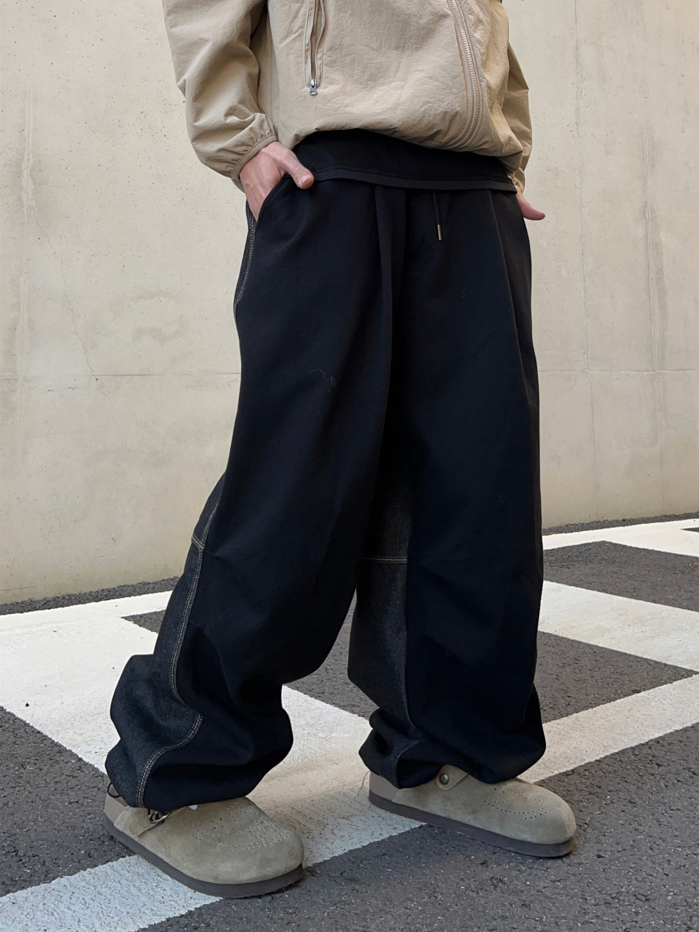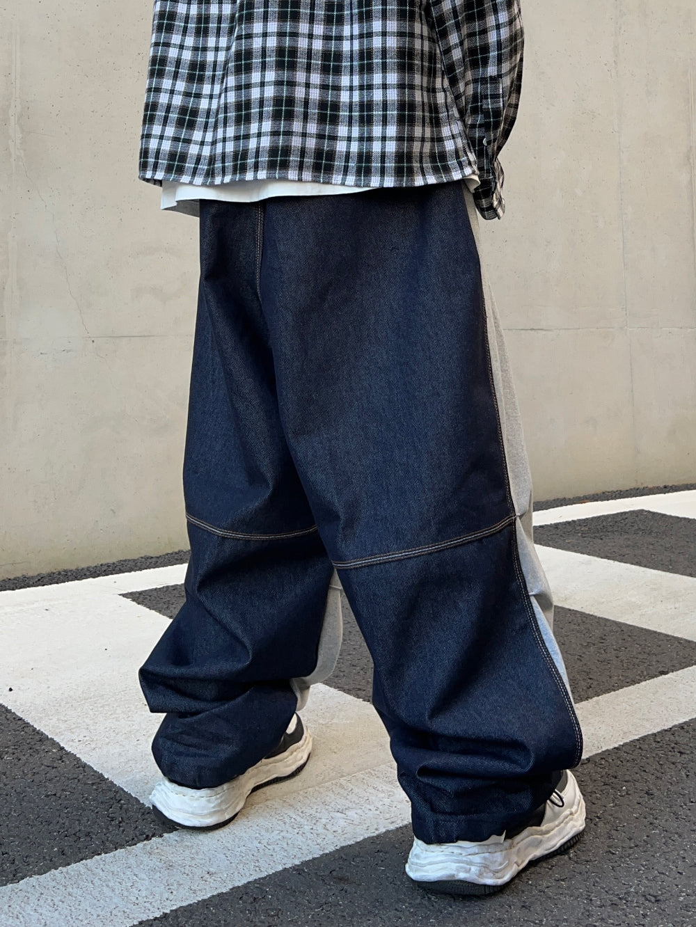 Half and Half Denim Balloon String Pants