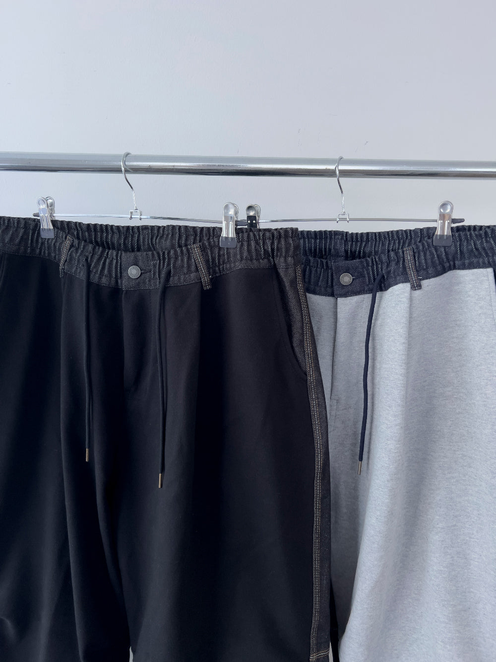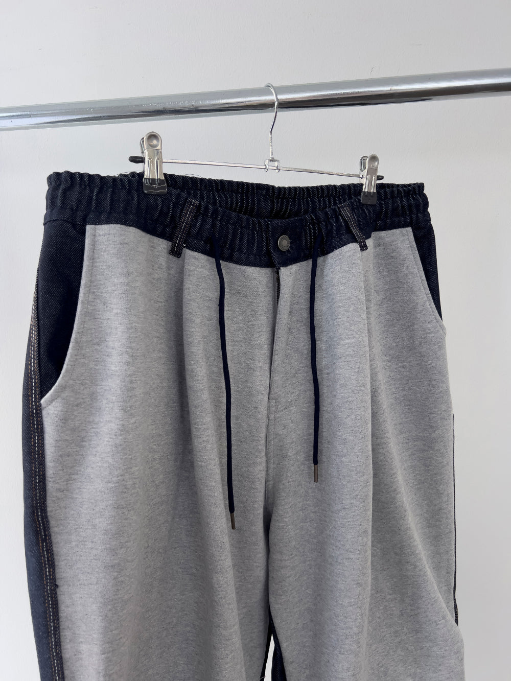 ハーフアンドハーフデニムバルーンストリングパンツ
