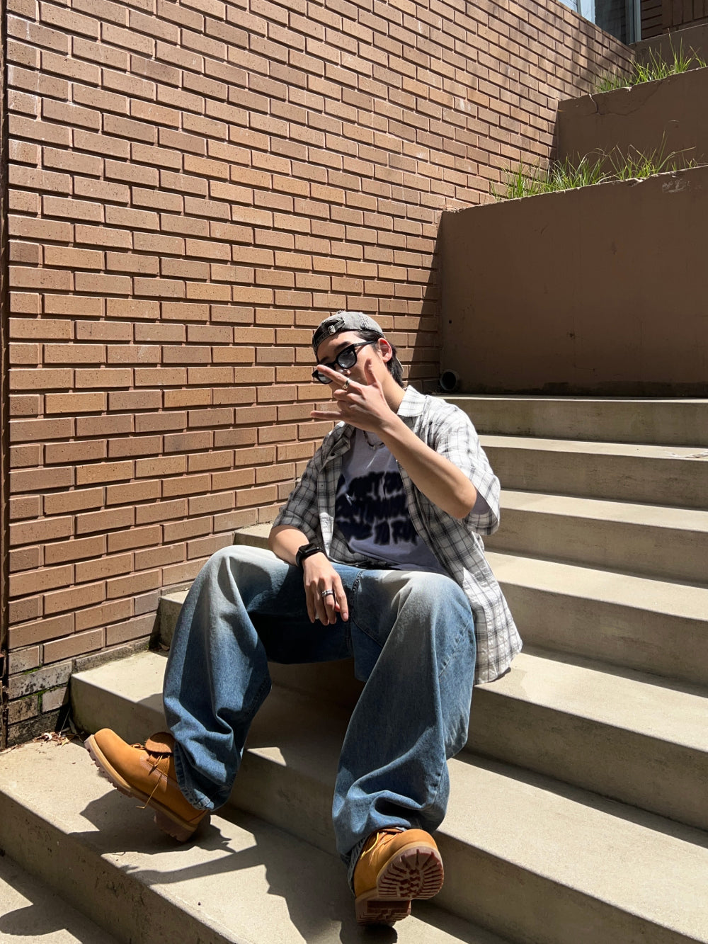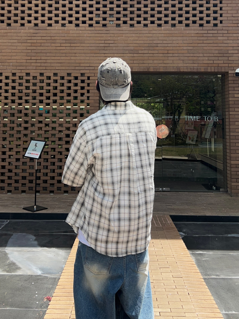 Kooリンクルチェック半袖Tシャツ