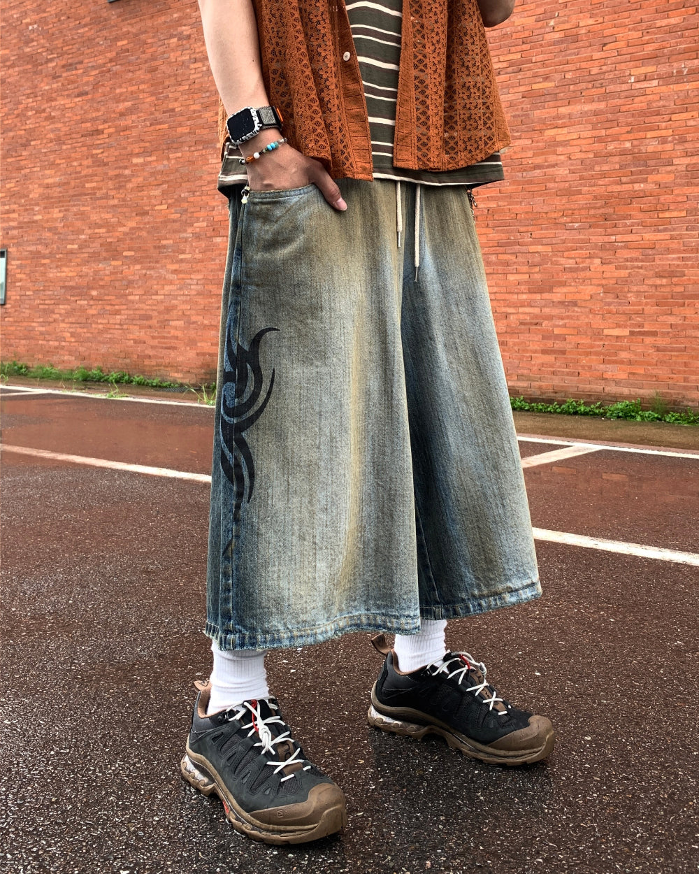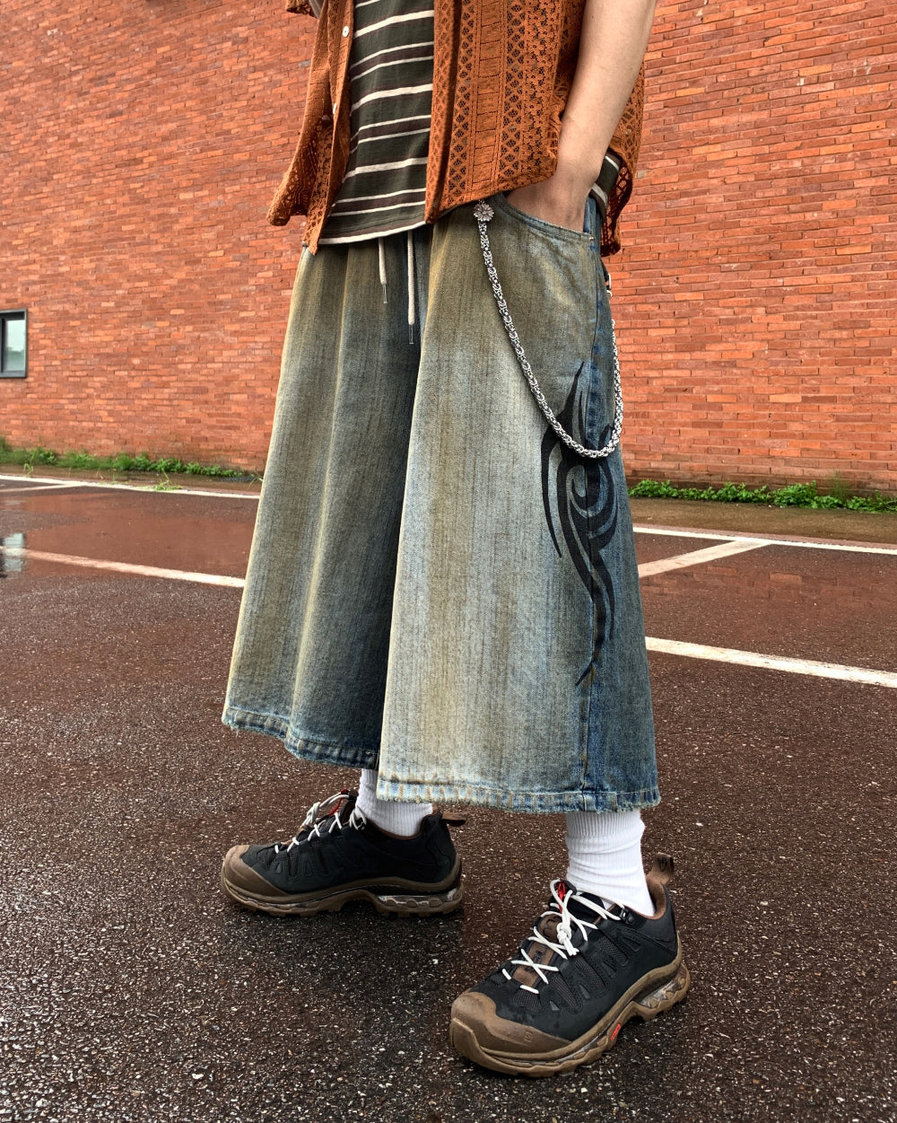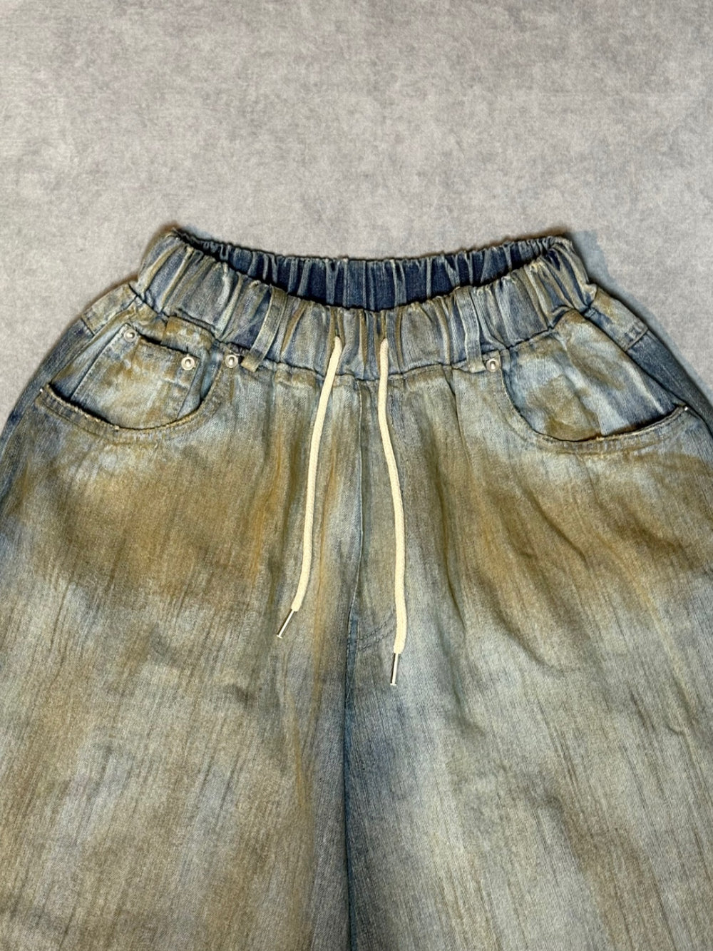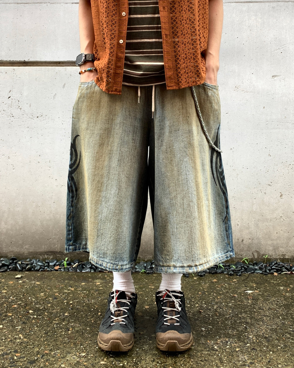 -ONE SIZE (ウエスト(ゴム)66-106 ヒップ- 股上37 股下35 もも周り84 裾周り78 総丈72)