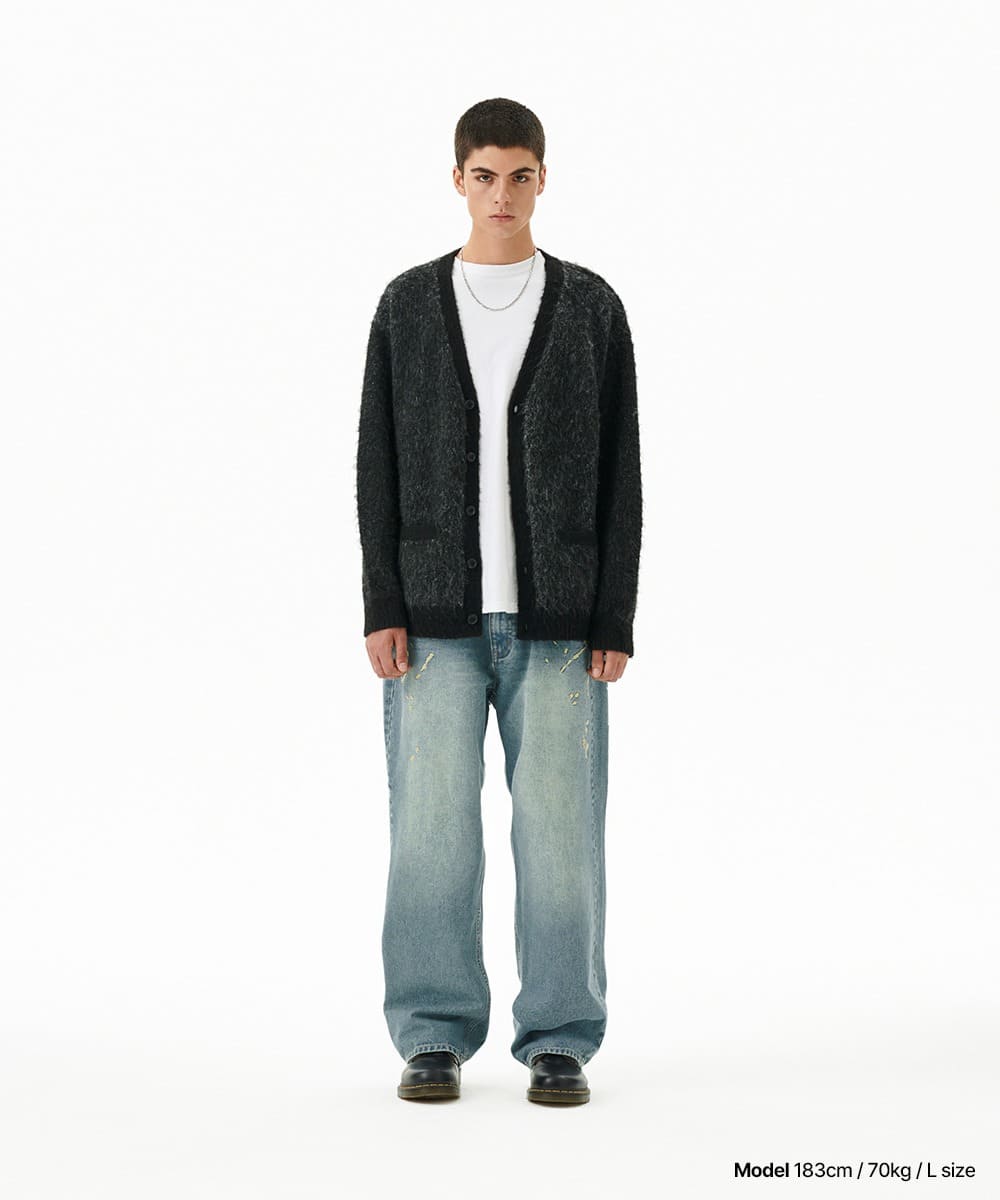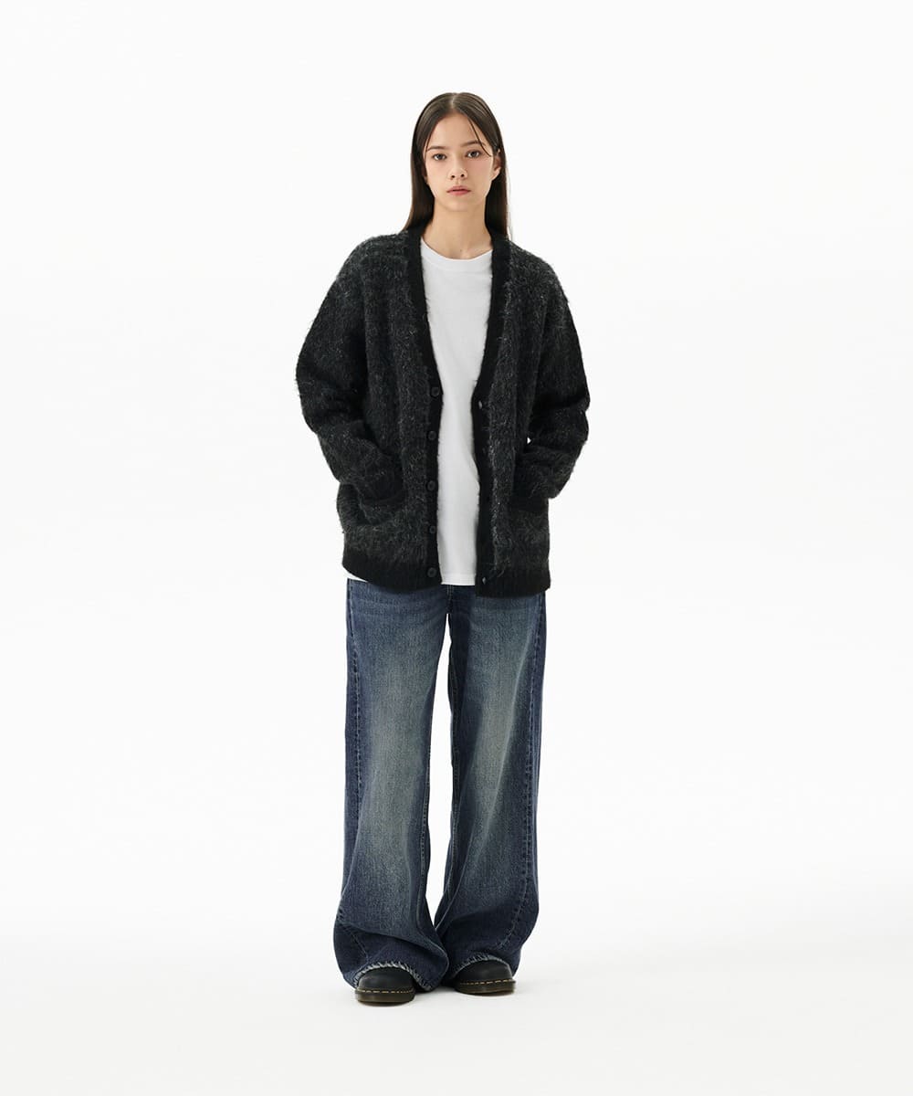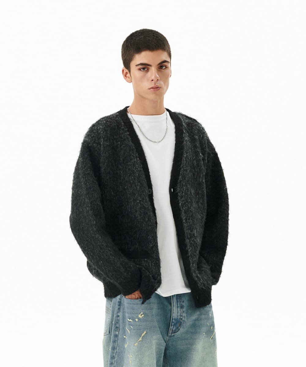 MIXED HAIRY KNIT CARDIGAN