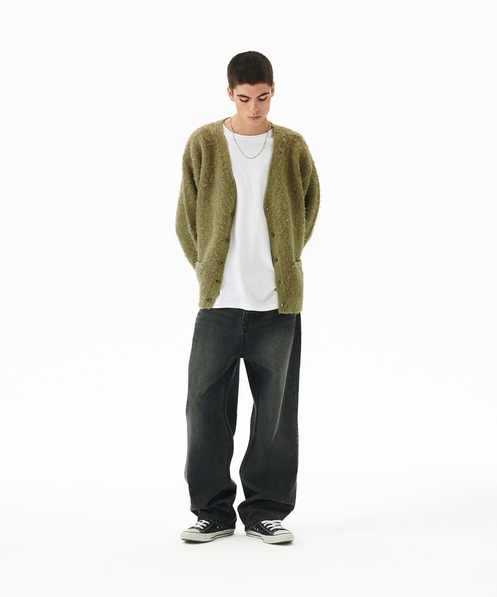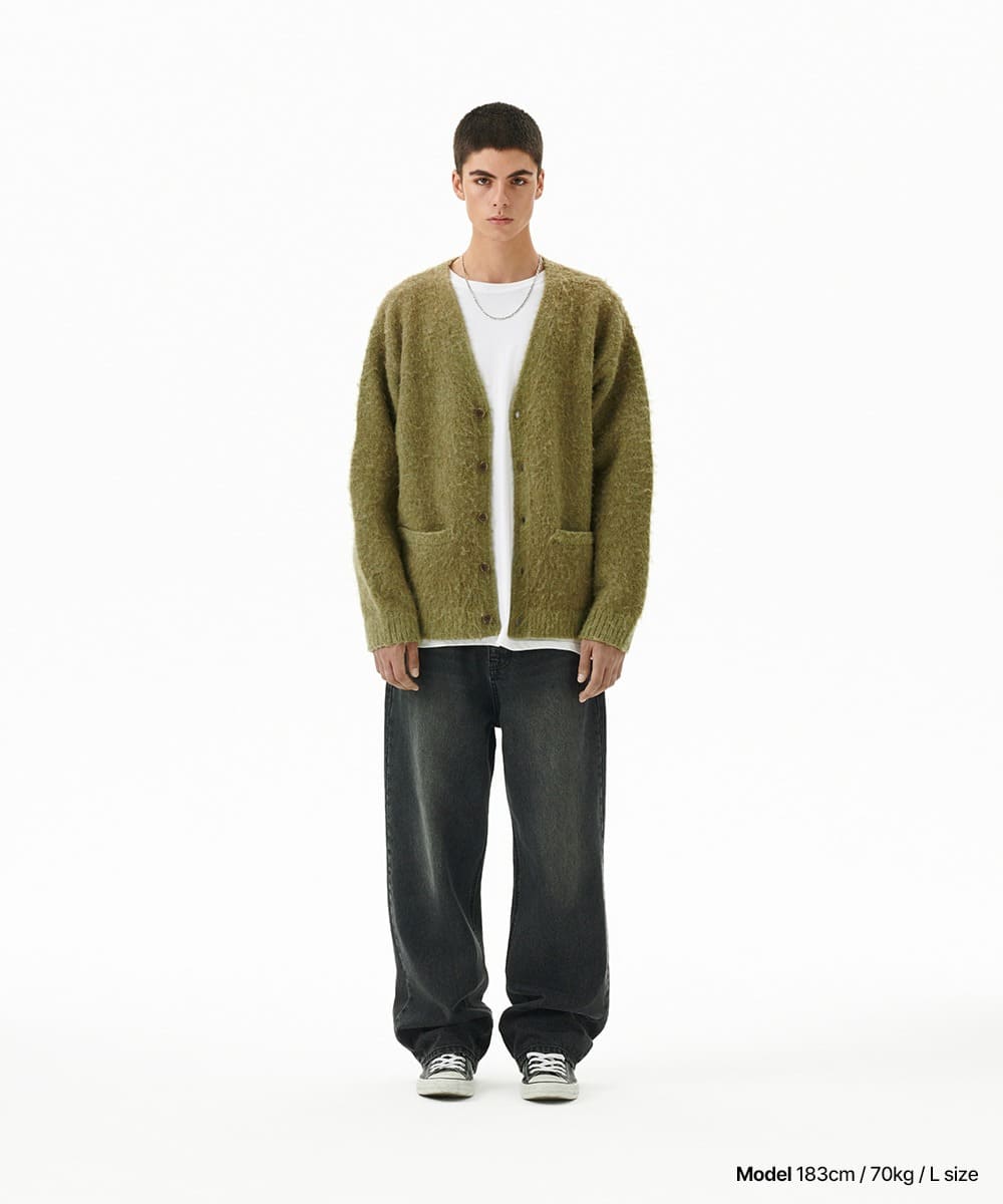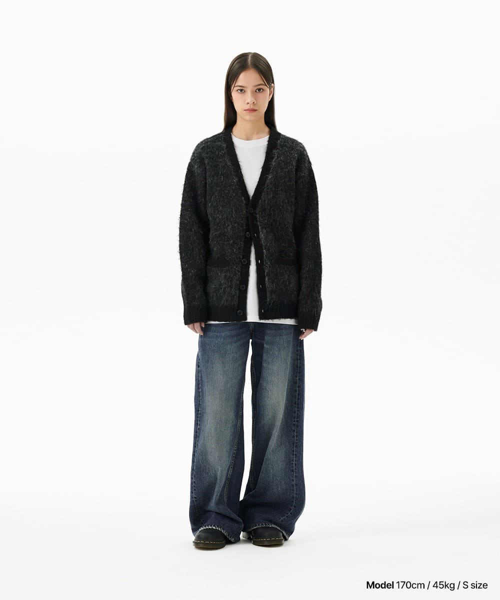 MIXED HAIRY KNIT CARDIGAN