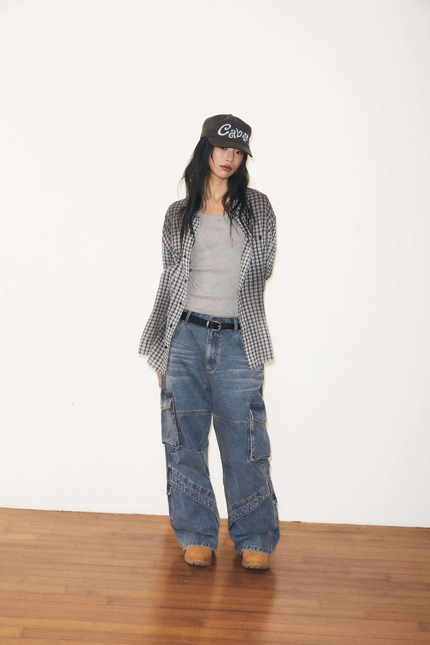 SPRAY DYEING CHECK CROP SHIRT