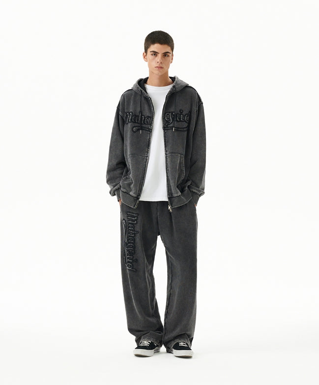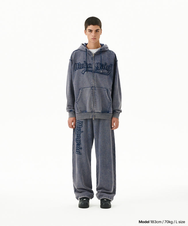 ウォッシュ加工カットオフアプリケスウェットパンツ