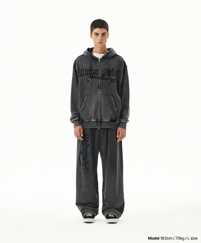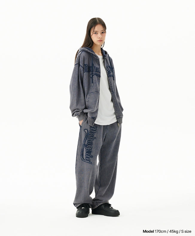 WASHED CUT OFF APPLIQUE SWEAT PANT
