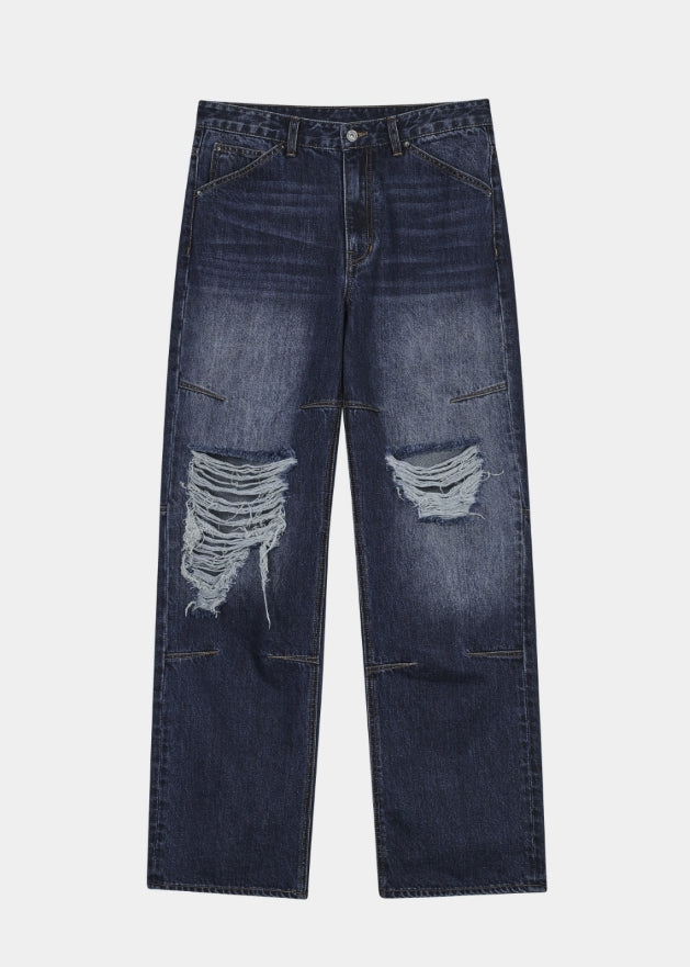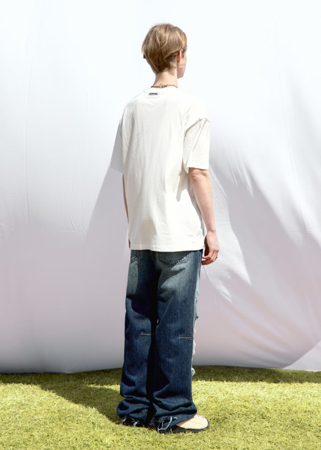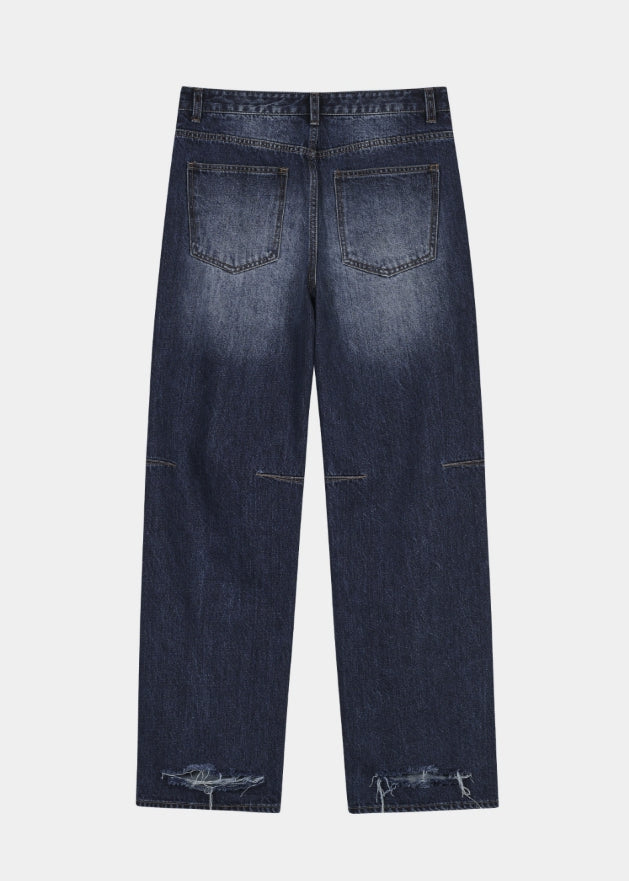 DAMAGE DART SEMI WIDE DENIM PANTS