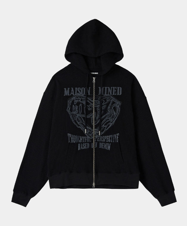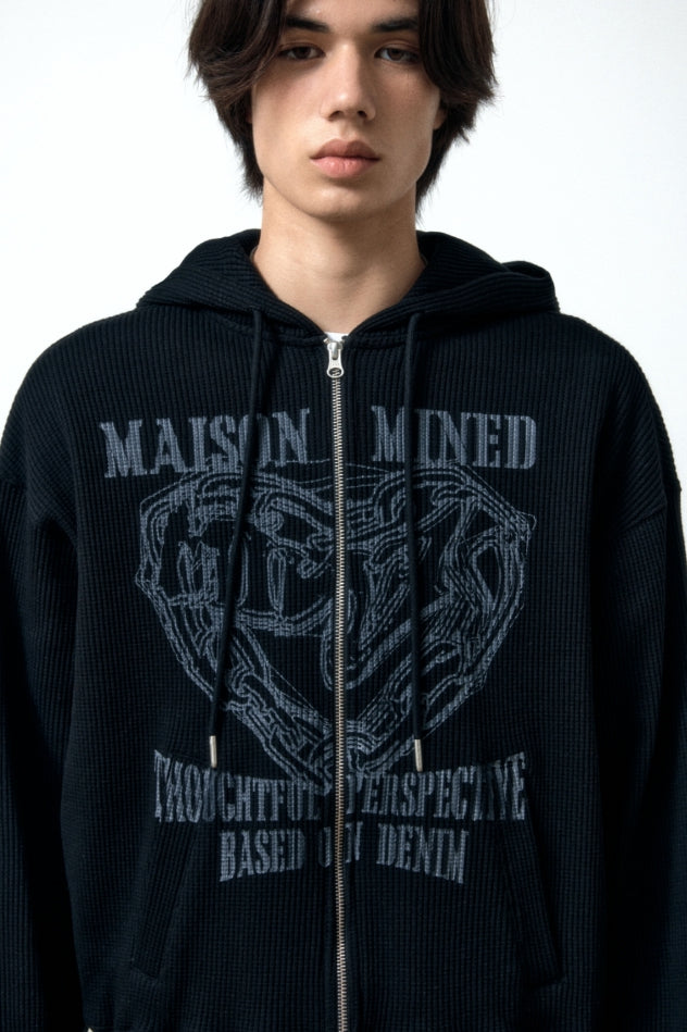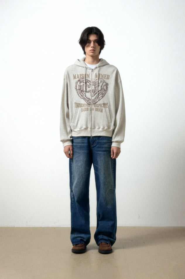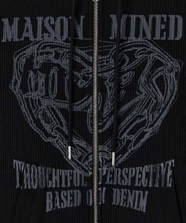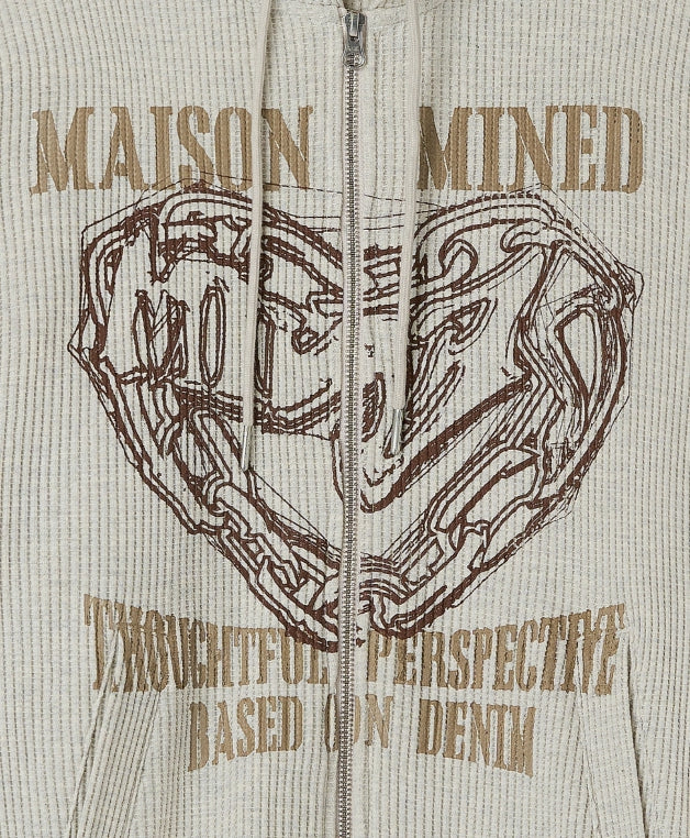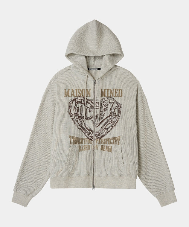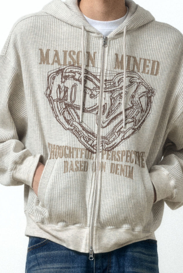 DOODLE HEART WAFFLE ZIP UP HOODIE