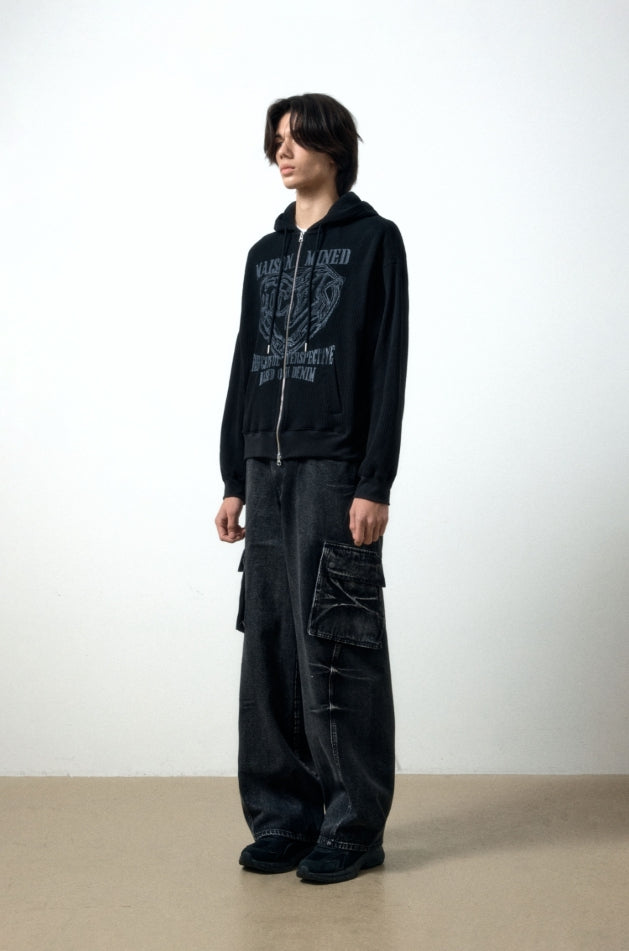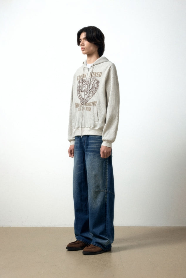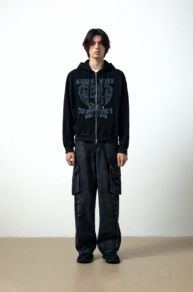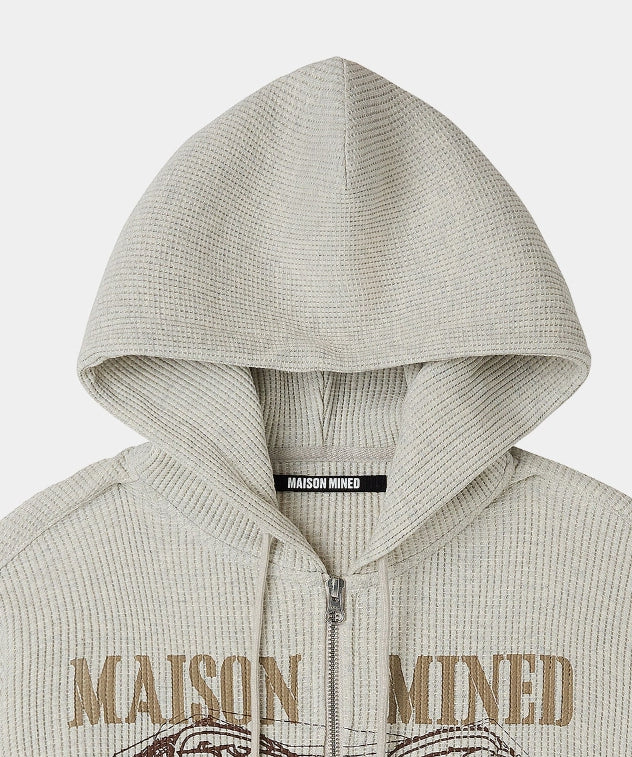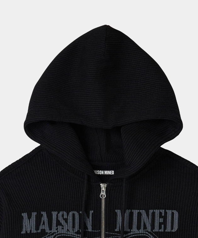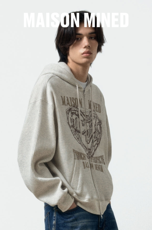 DOODLE HEART WAFFLE ZIP UP HOODIE