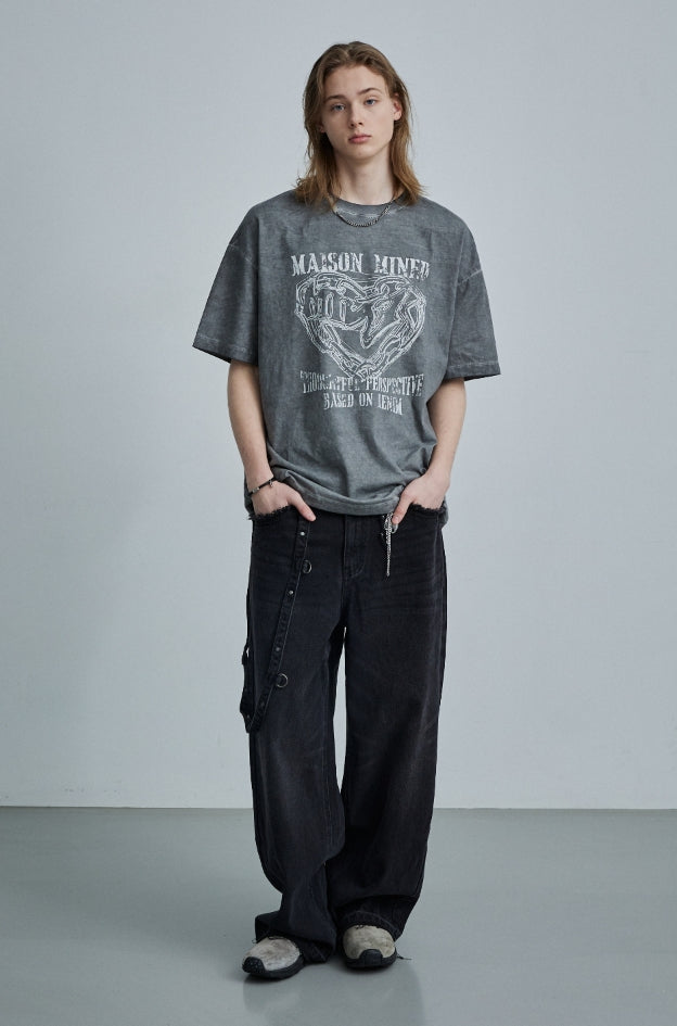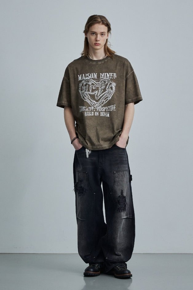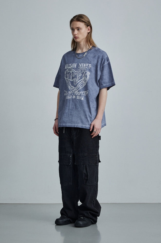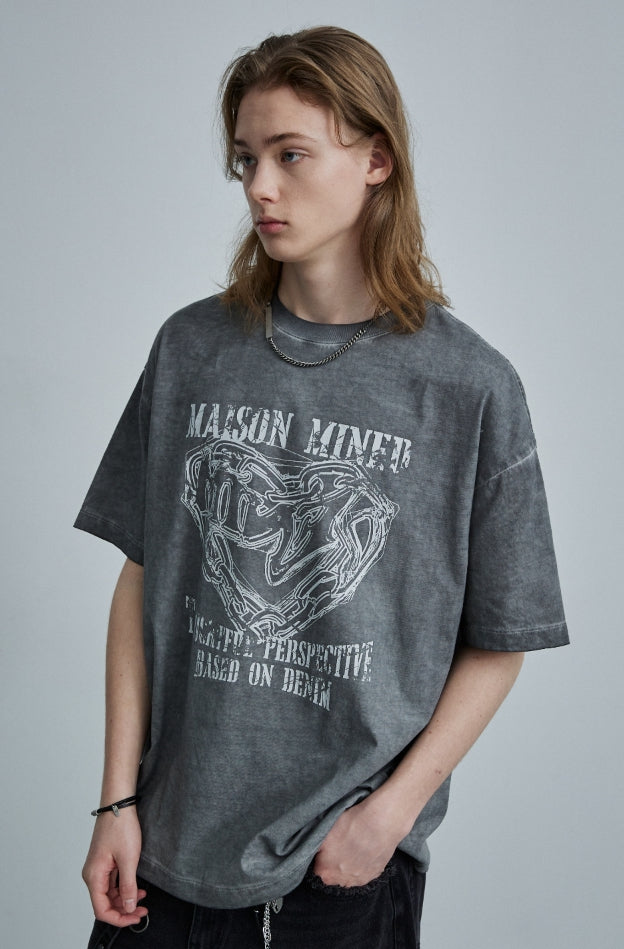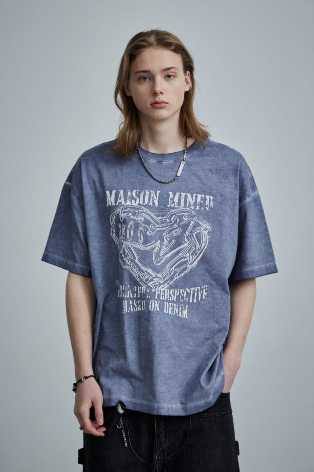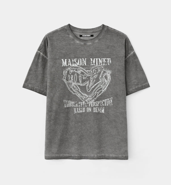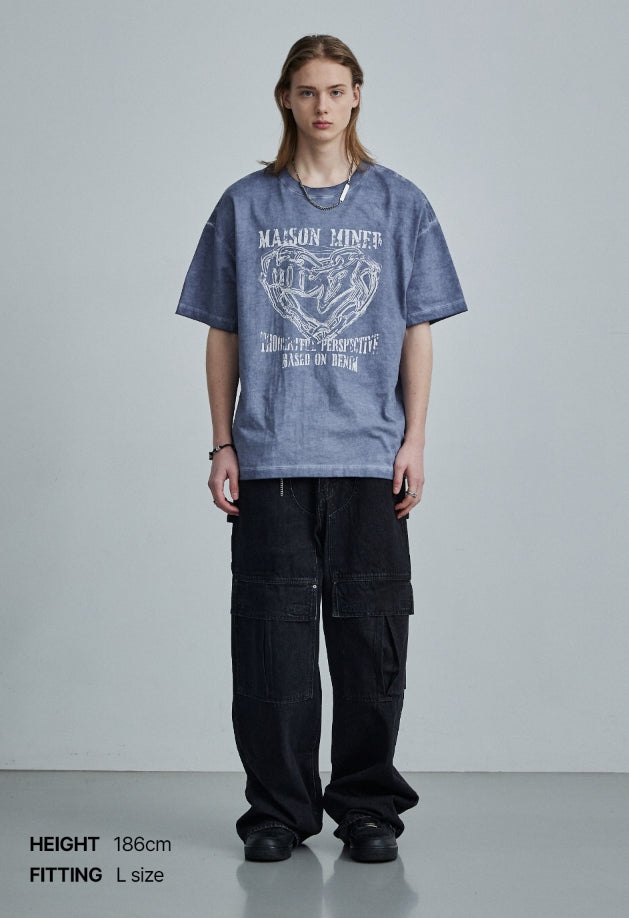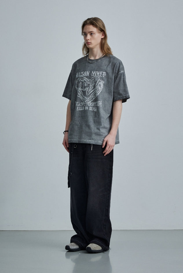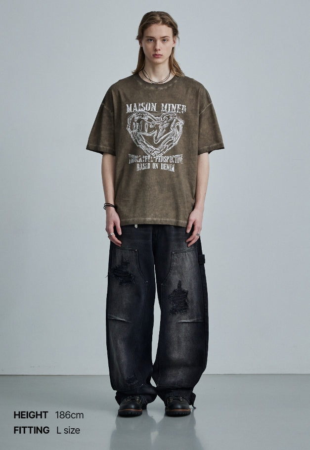 ドゥードルハートウォッシュ加工半袖Tシャツ