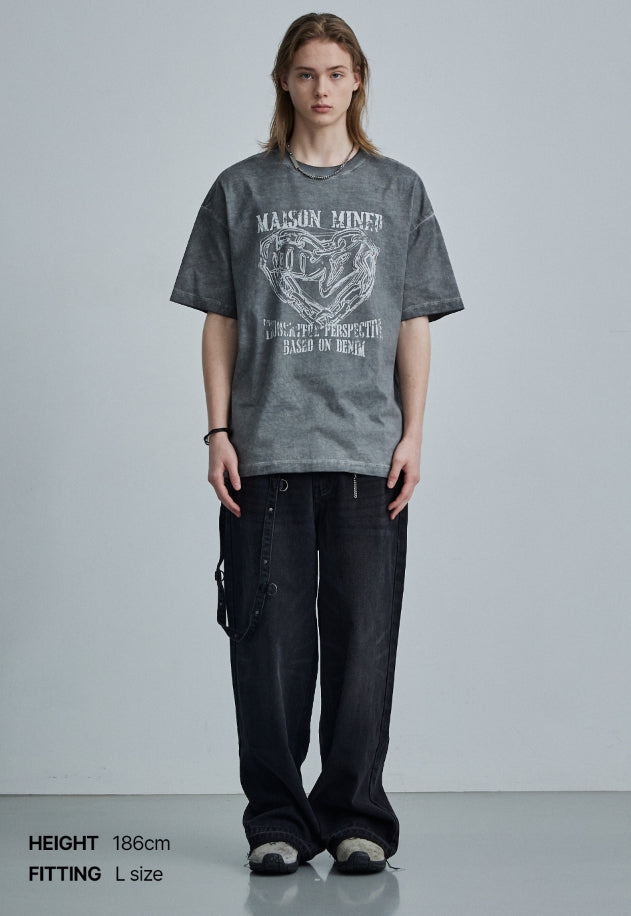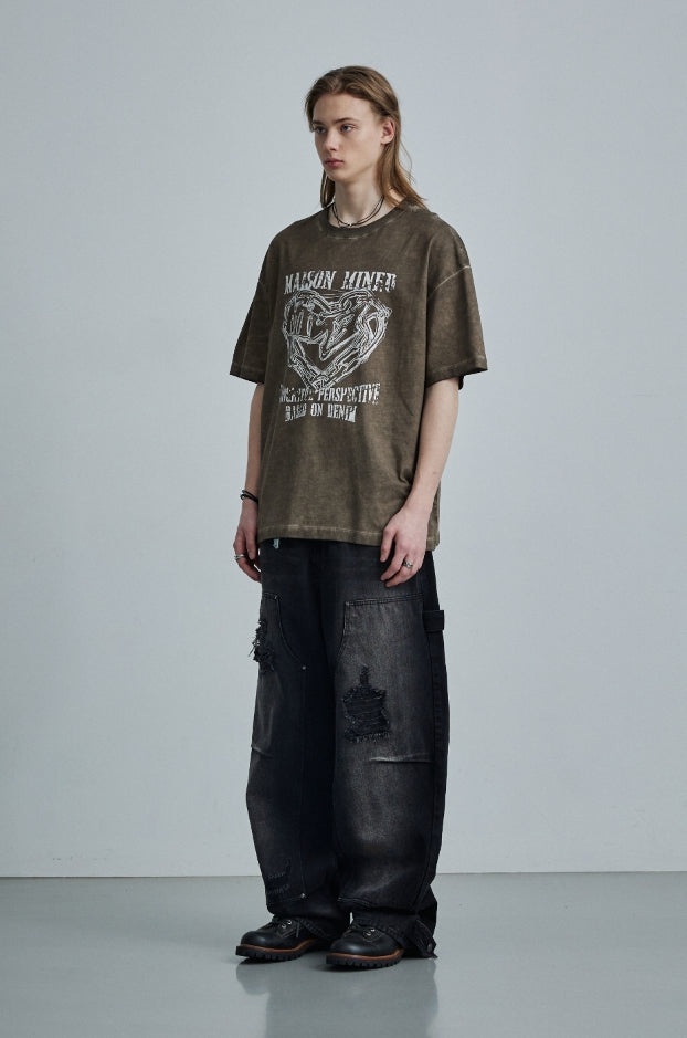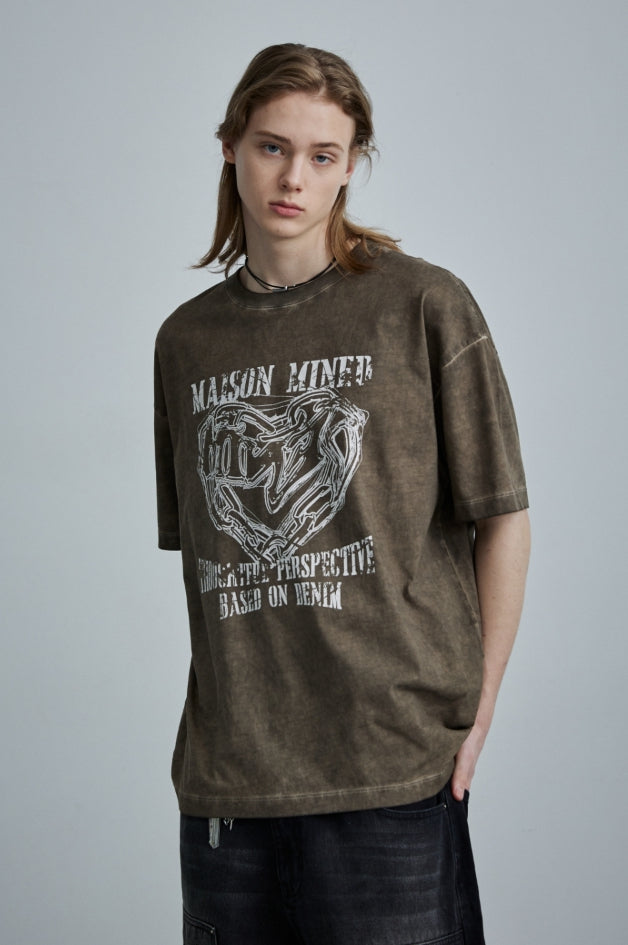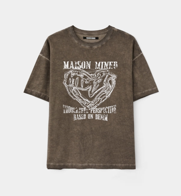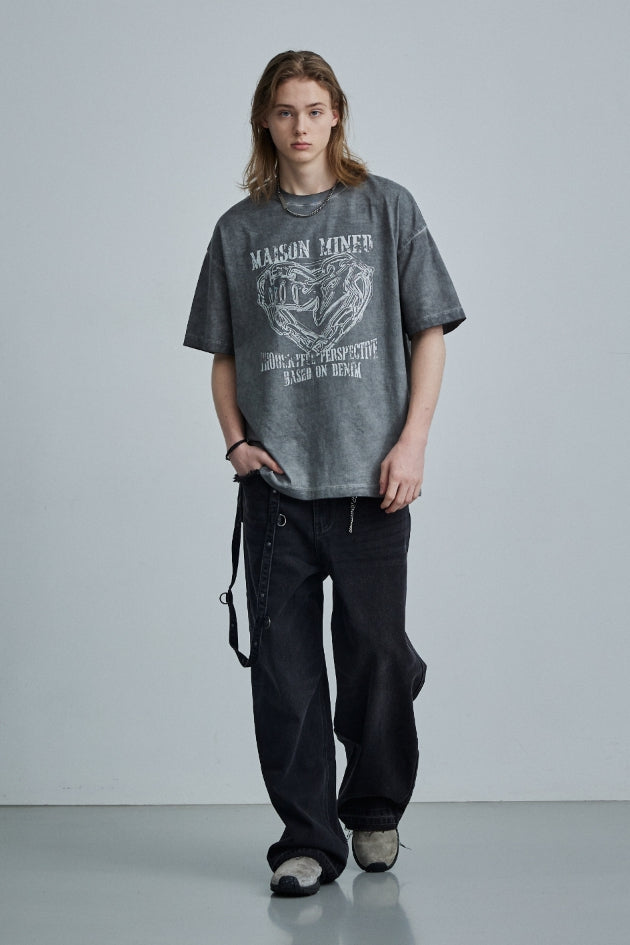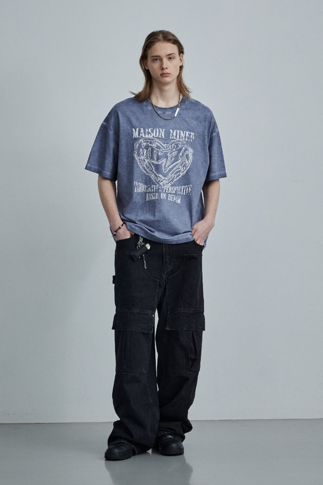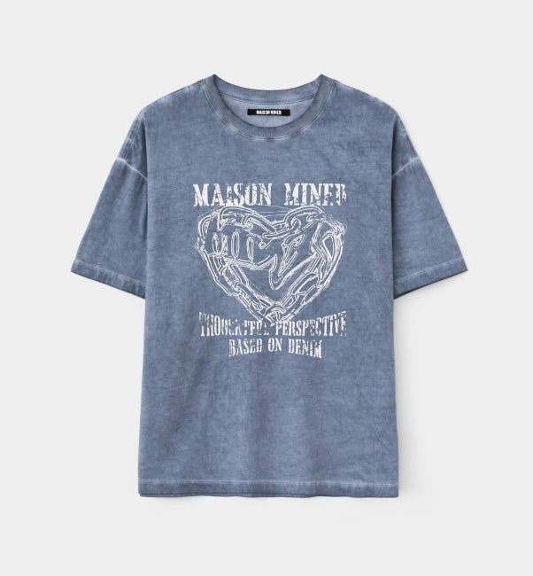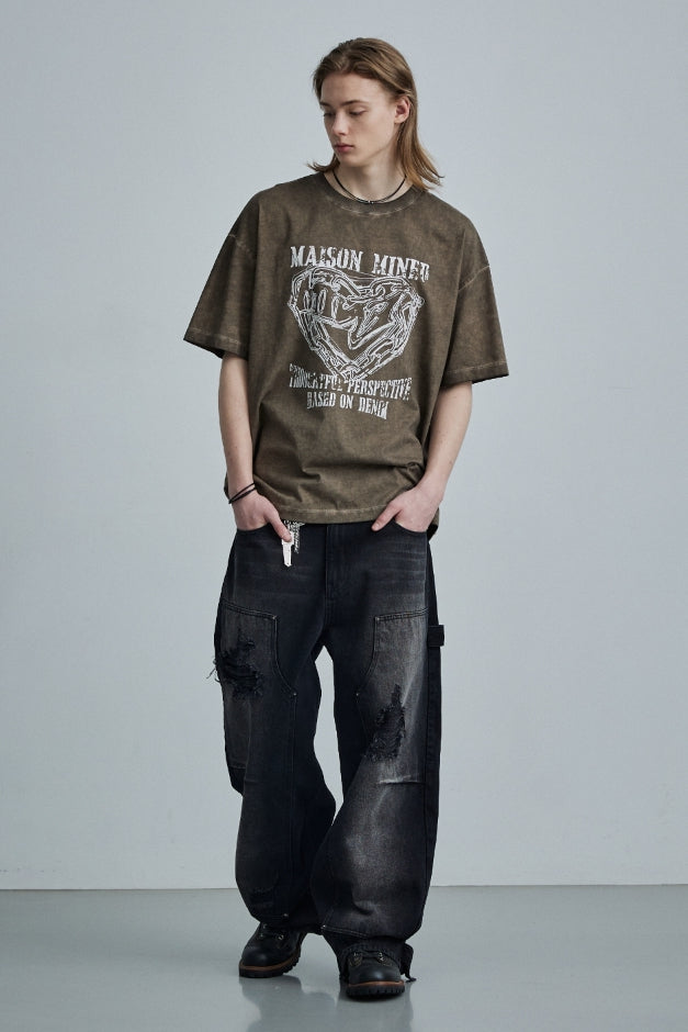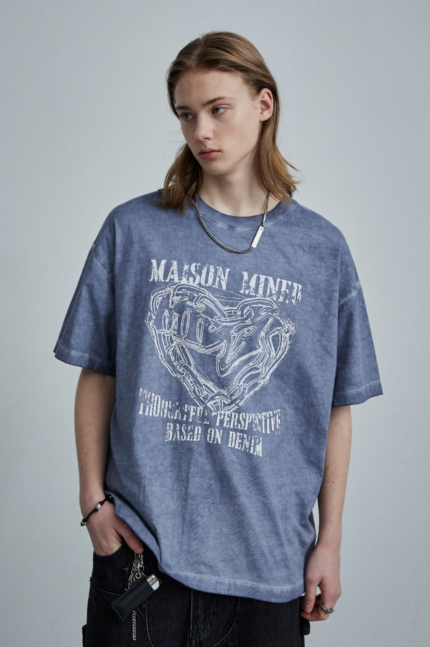 ドゥードルハートウォッシュ加工半袖Tシャツ
