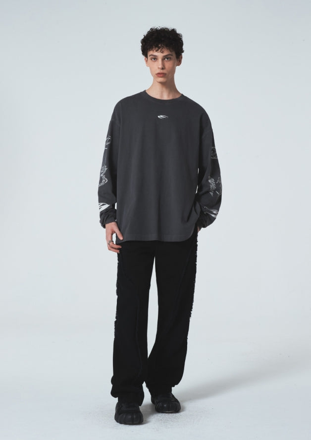 マークウォッシュ加工長袖Tシャツ