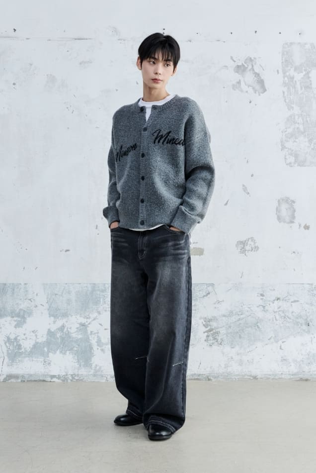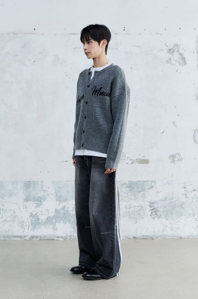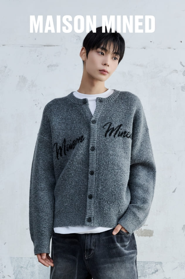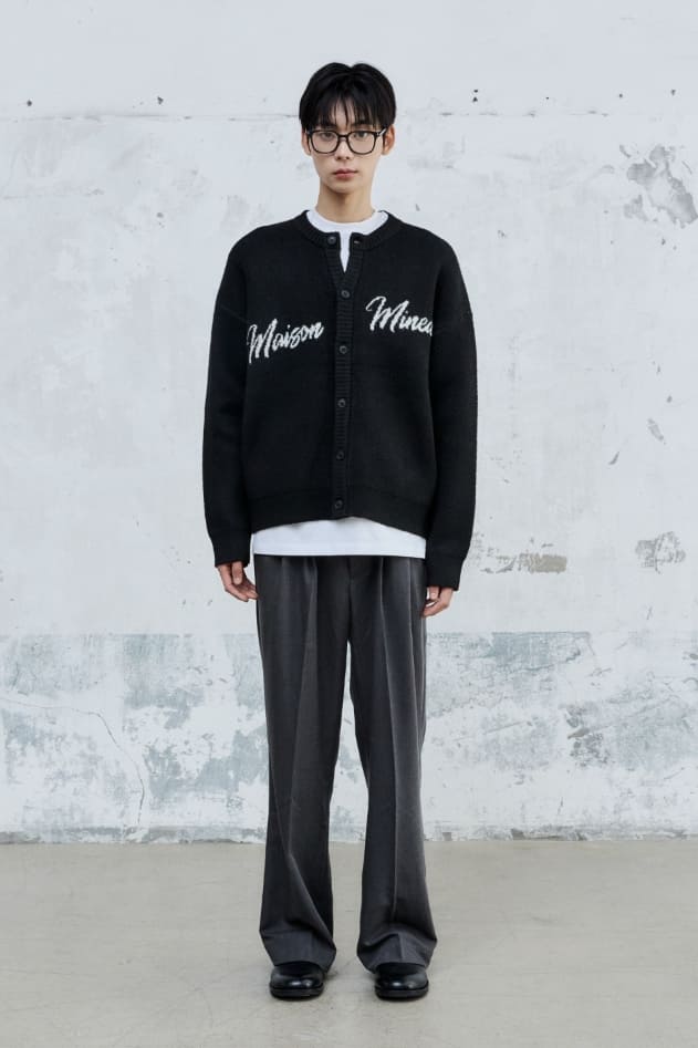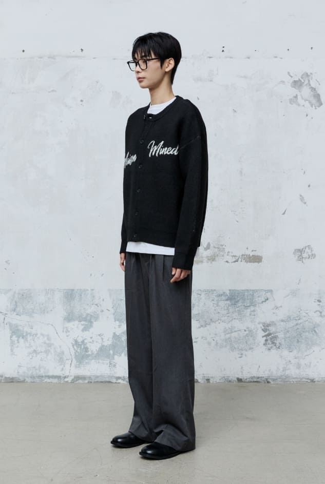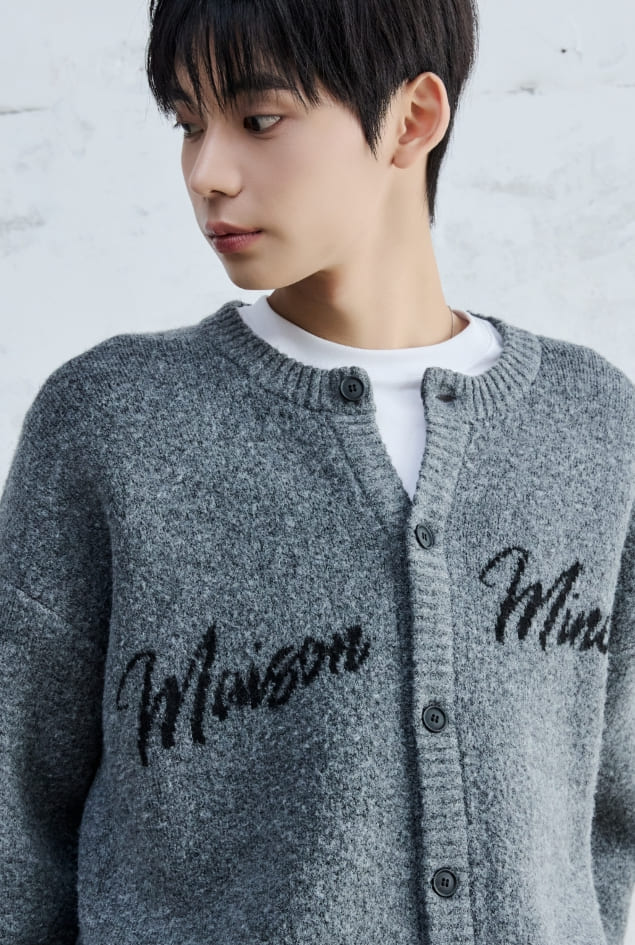 SCRIPT TYPE ROUND NECK CARDIGAN
