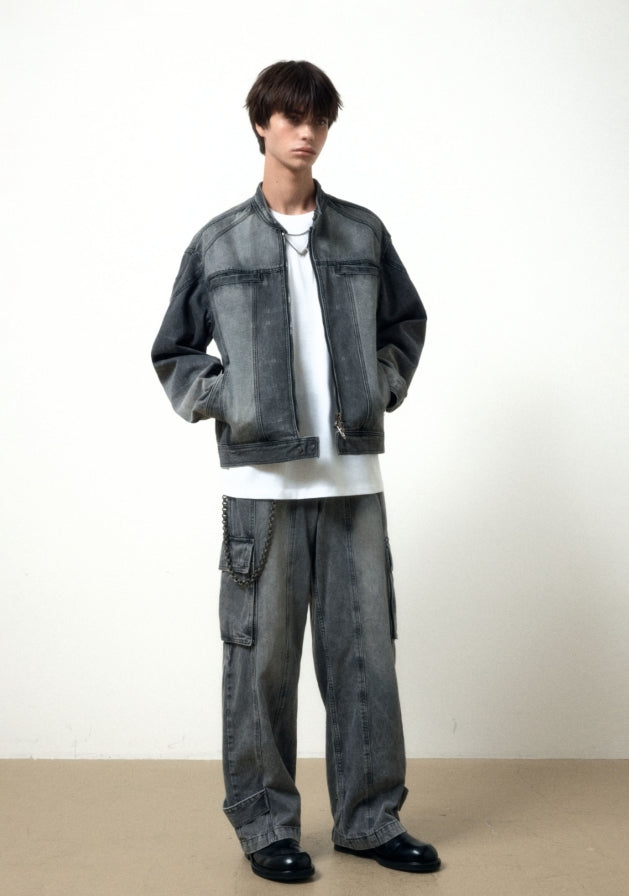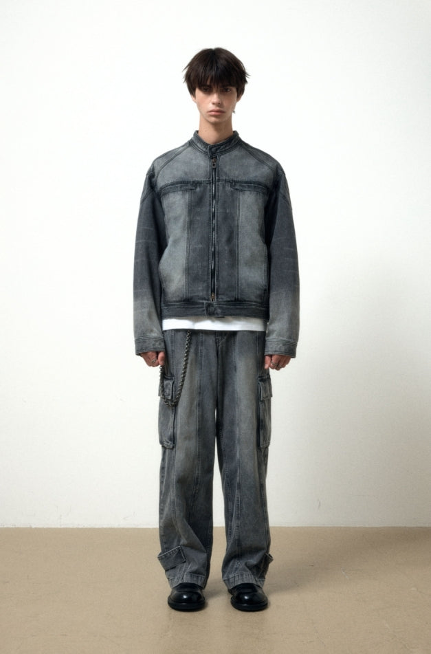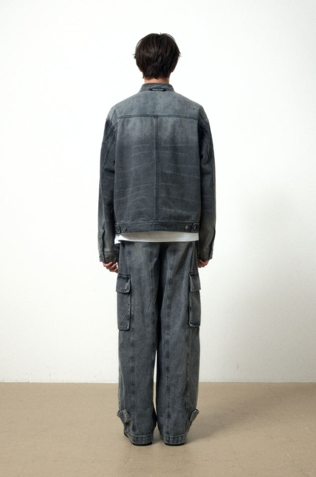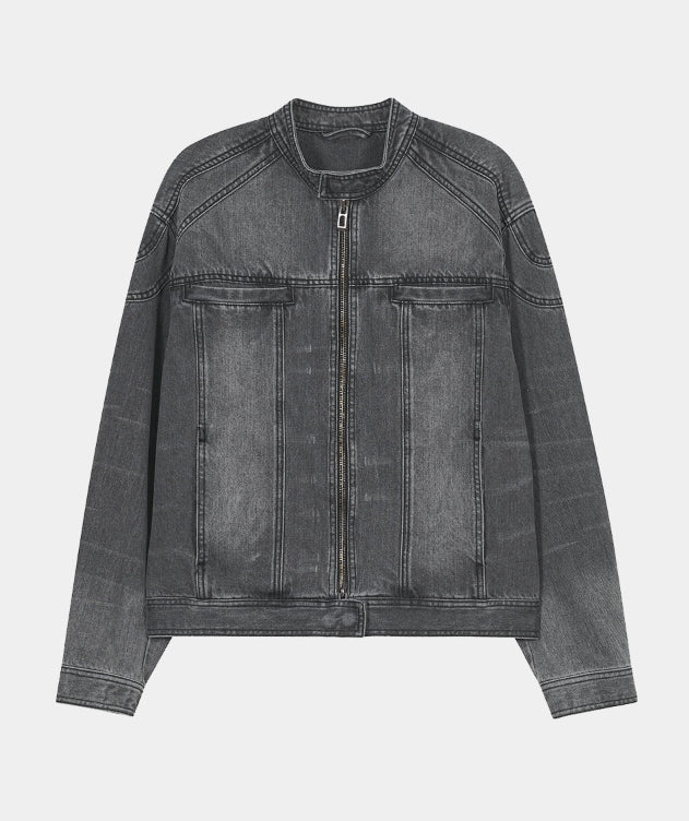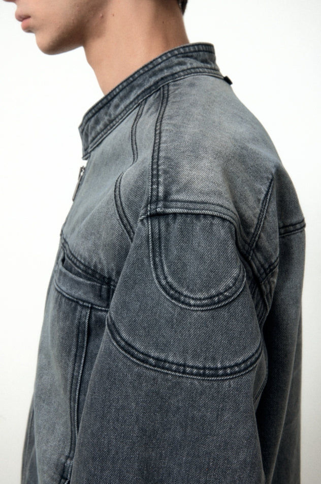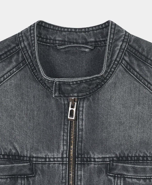 SNAP BIKER DENIM JACKET