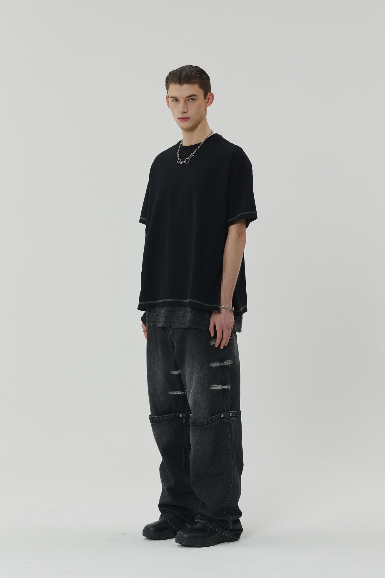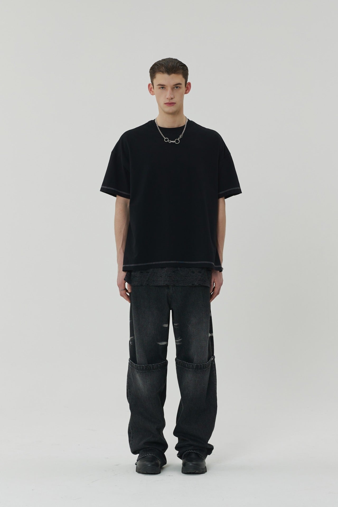 ソルブロンジャガードレイヤード半袖Tシャツ