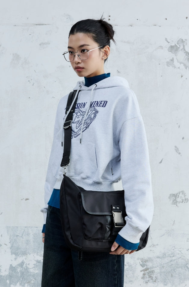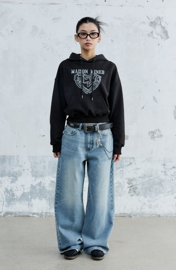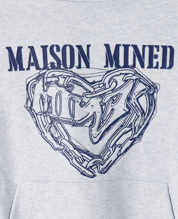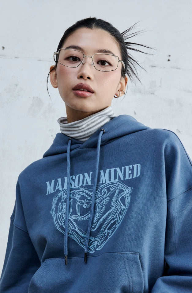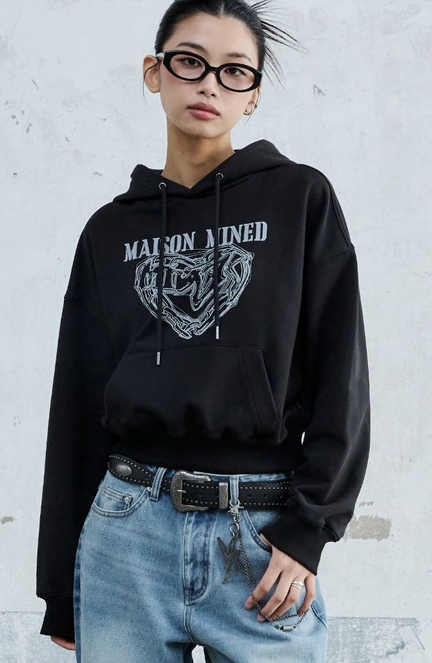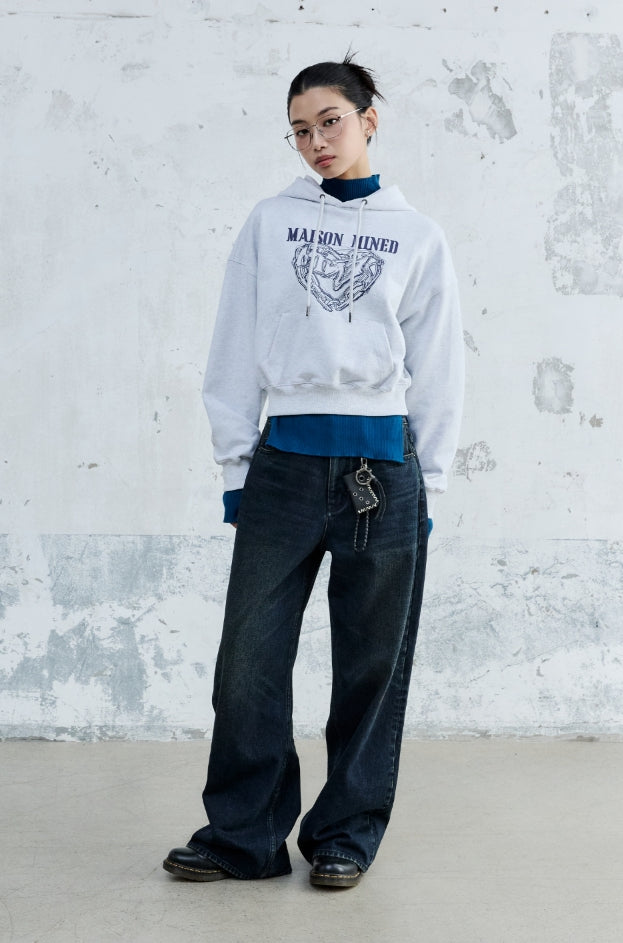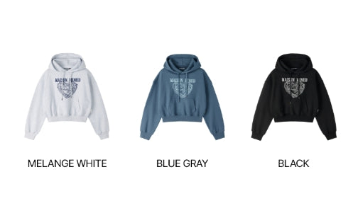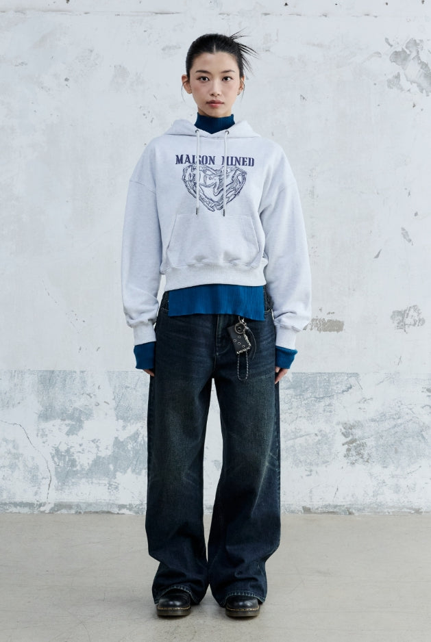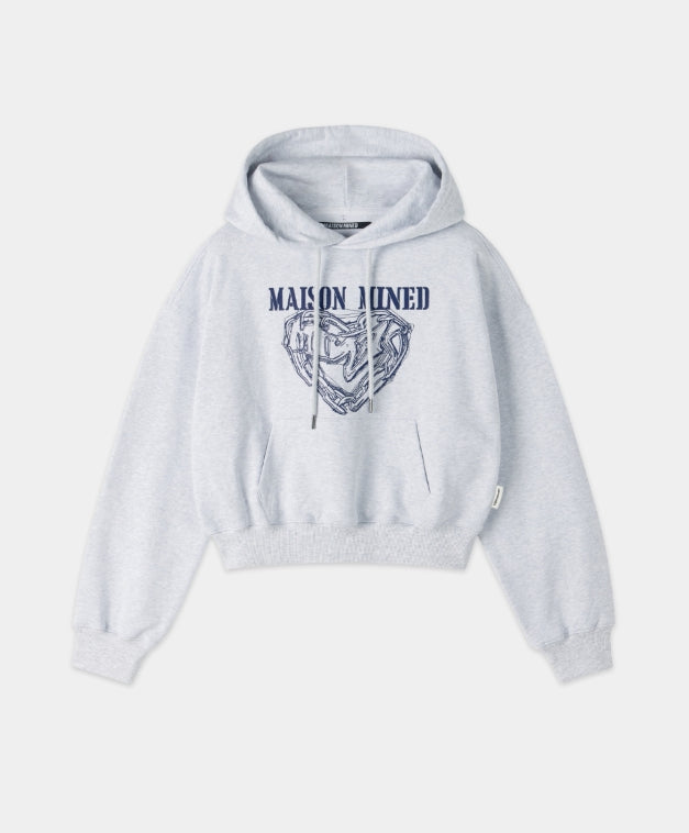 (W) DOODLE HEART CROP HOODIE
