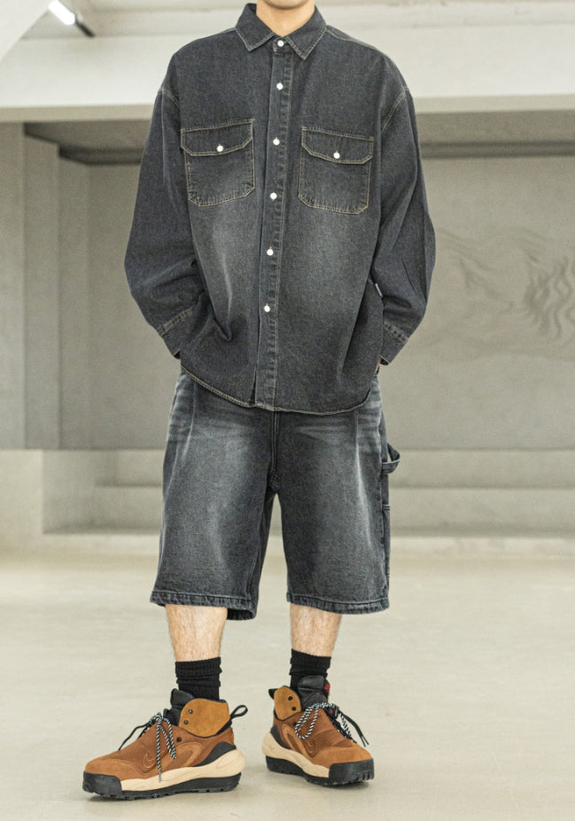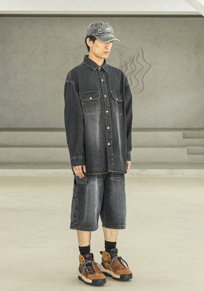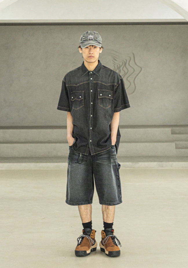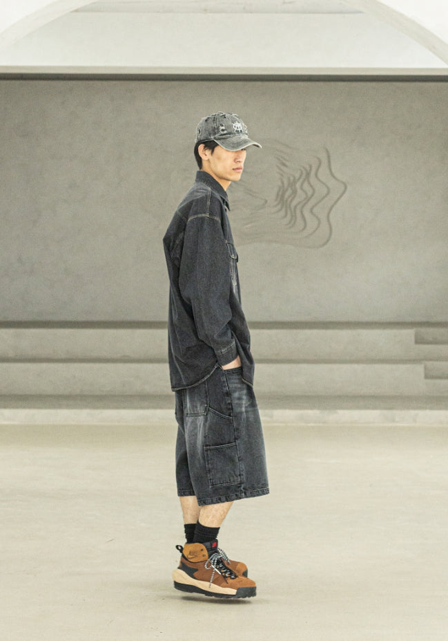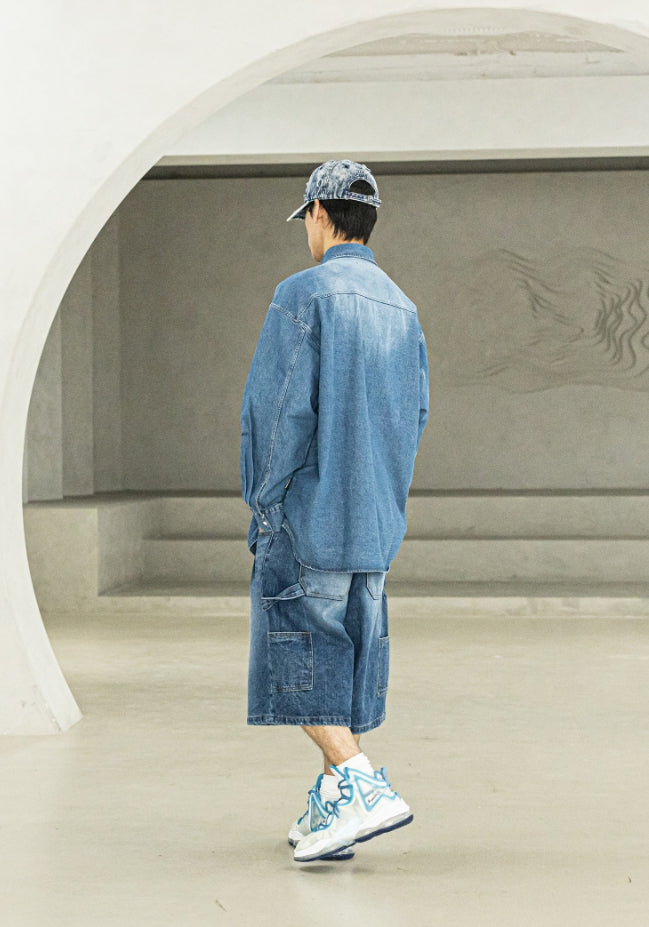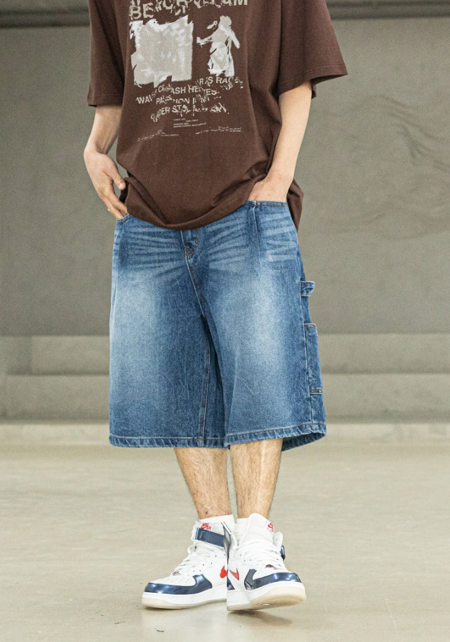 バミューダプリーツカーペンターデニムショートパンツ