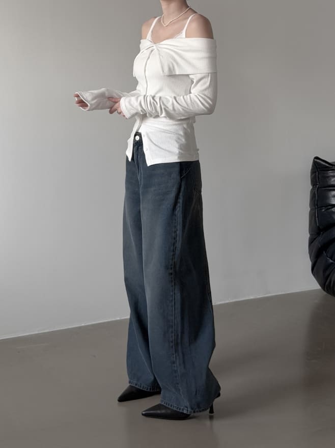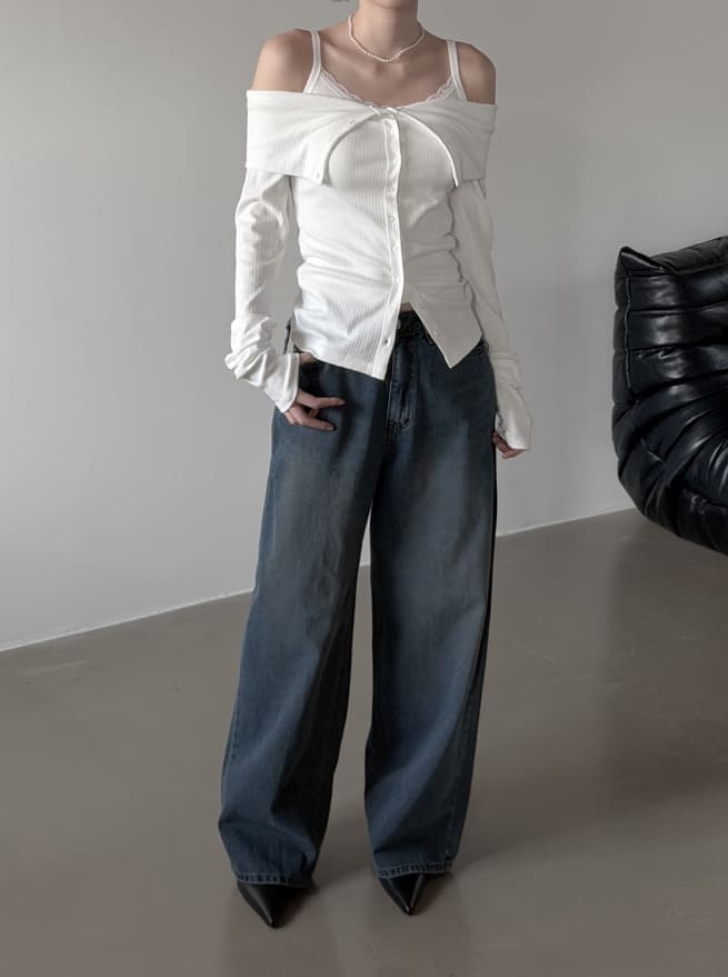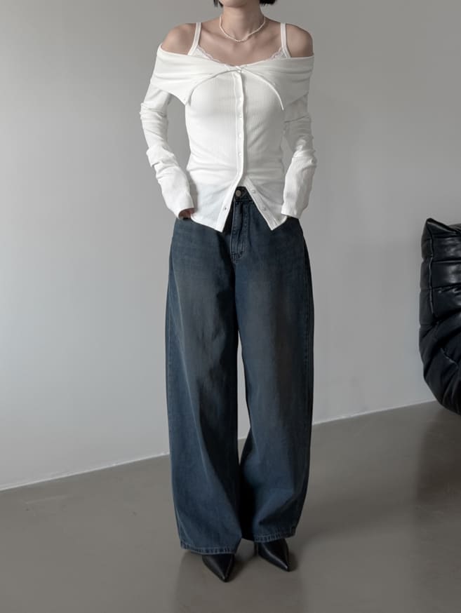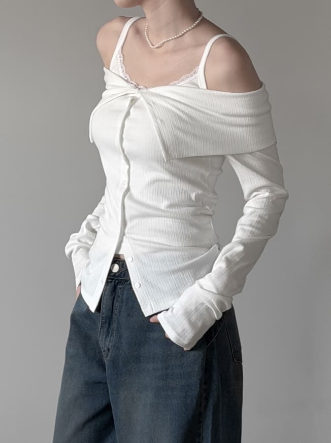 ベルクボタンオフショルダーカーディガン