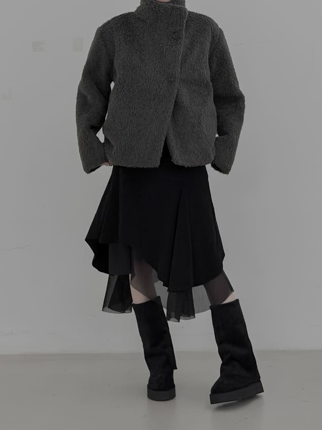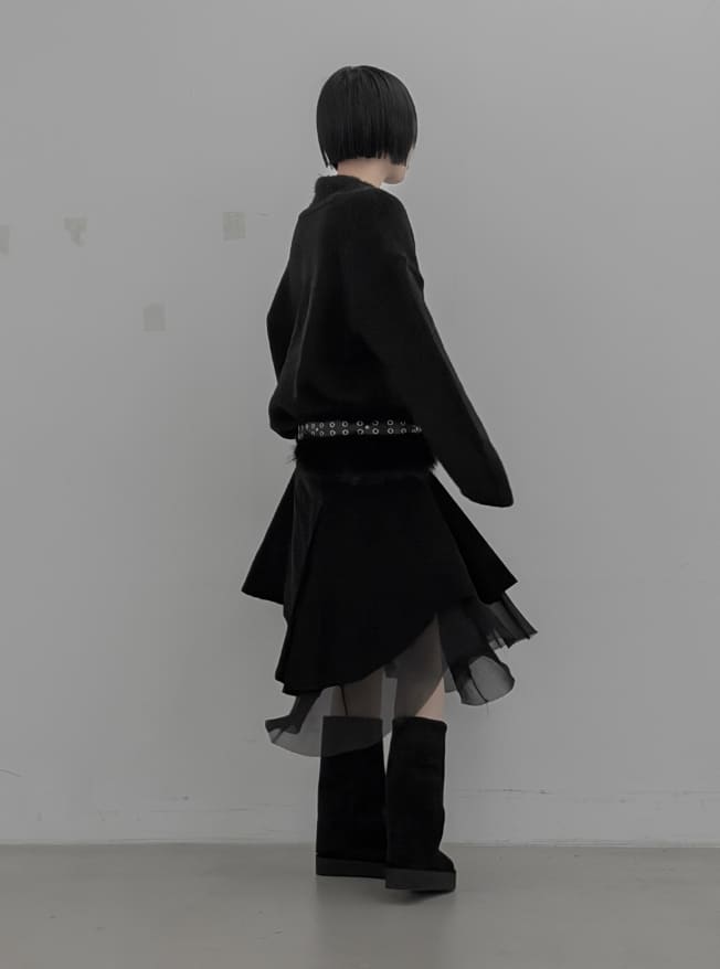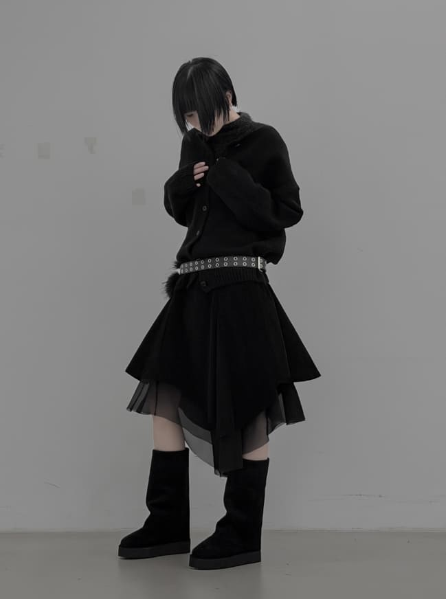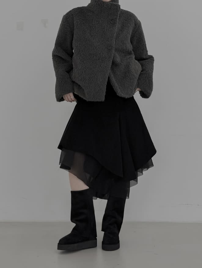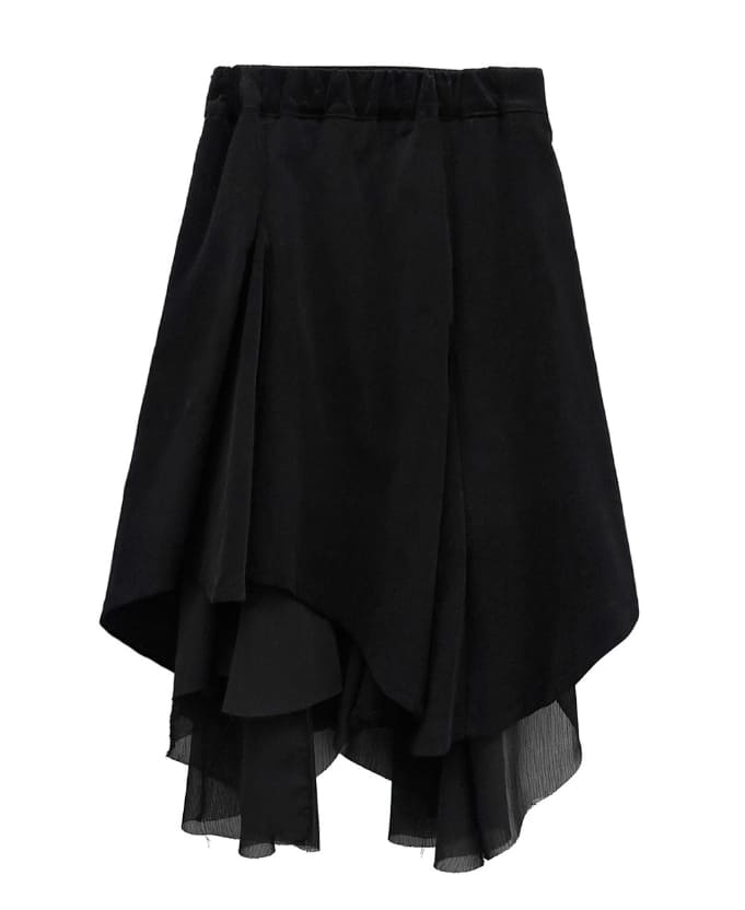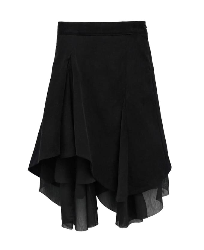 Corduroy Chiffon Unbalanced Midi Skirt