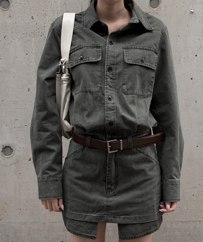 ダッチドウォッシュ加工ベルトジャンプスーツ
