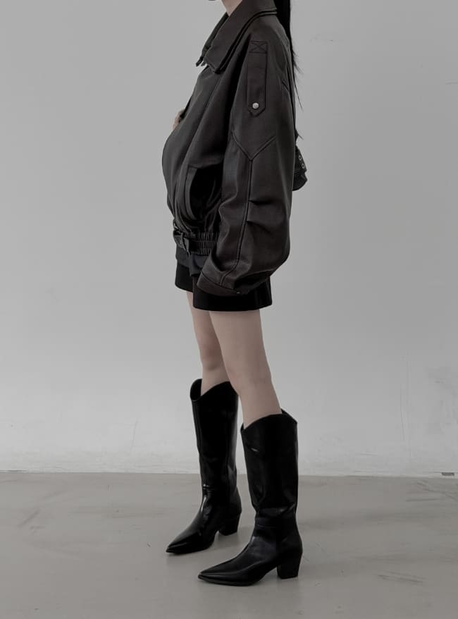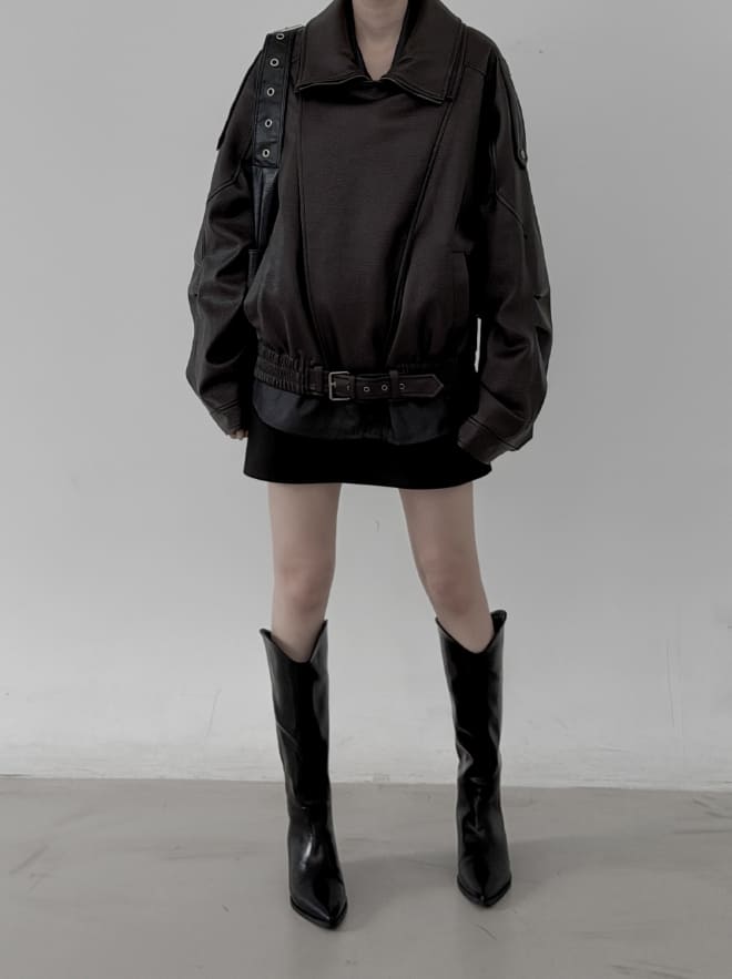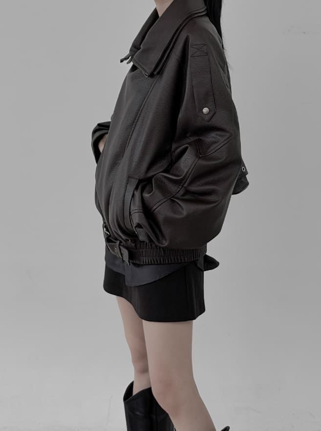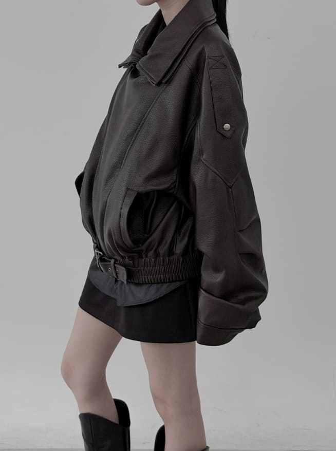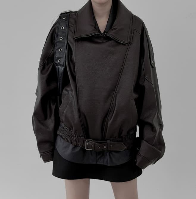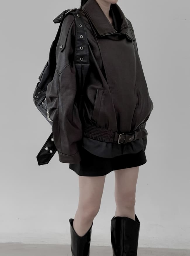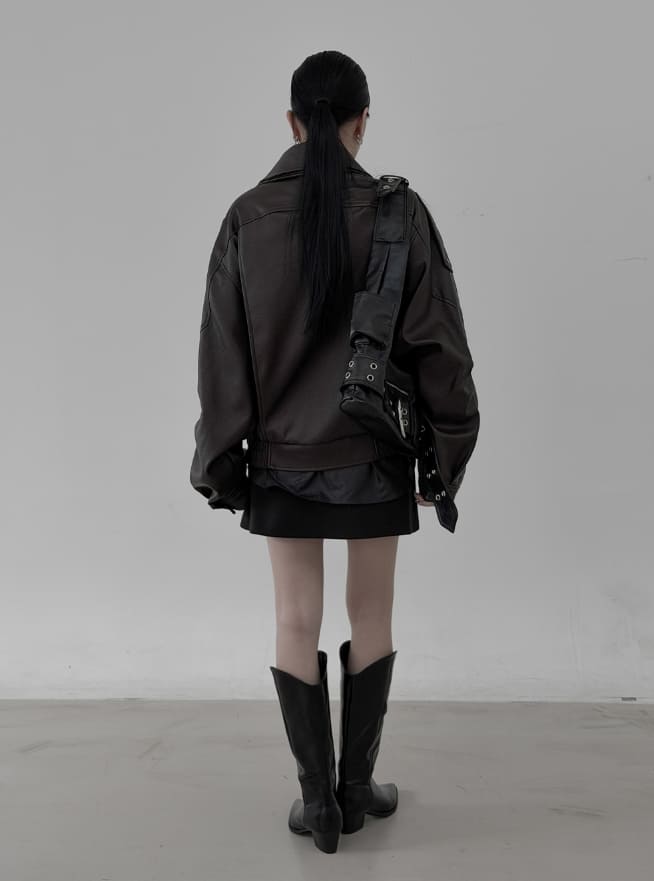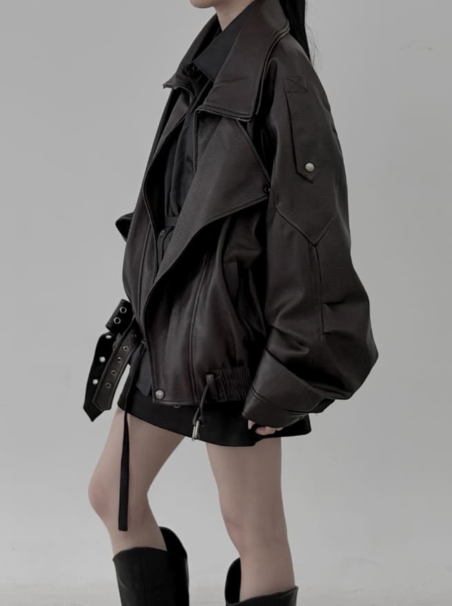Double-collar leather rider jacket