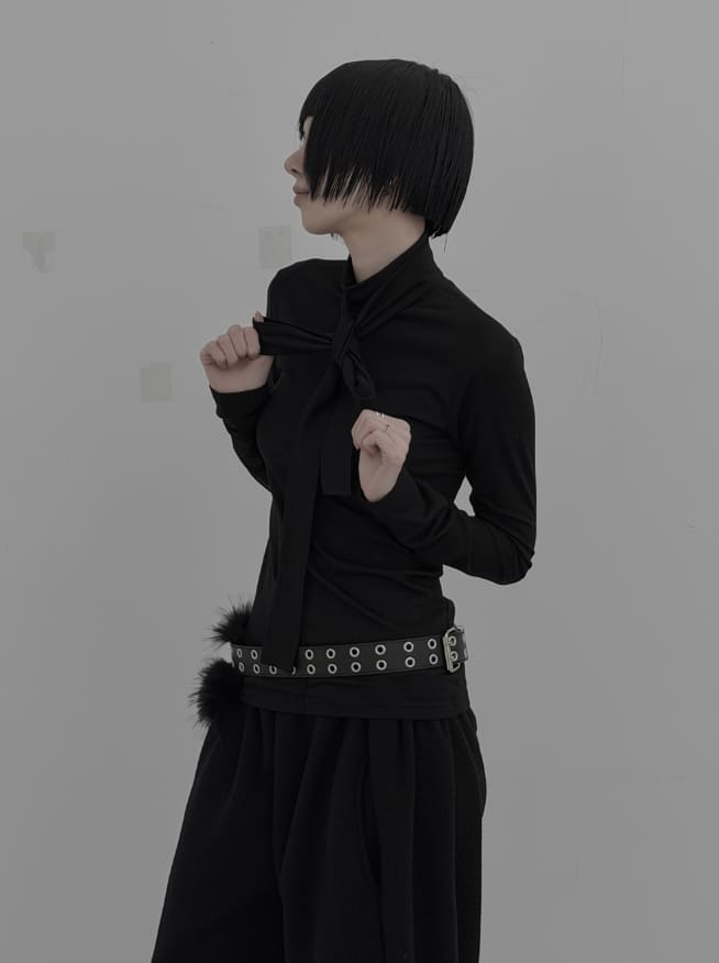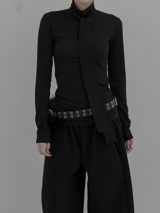 ルエル裏起毛スカーフタートルネックTシャツ