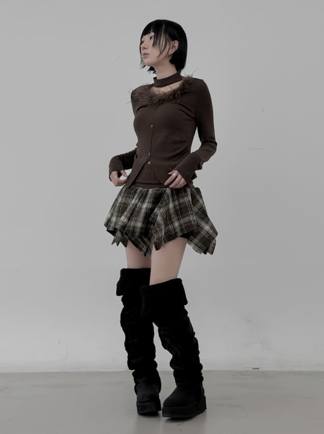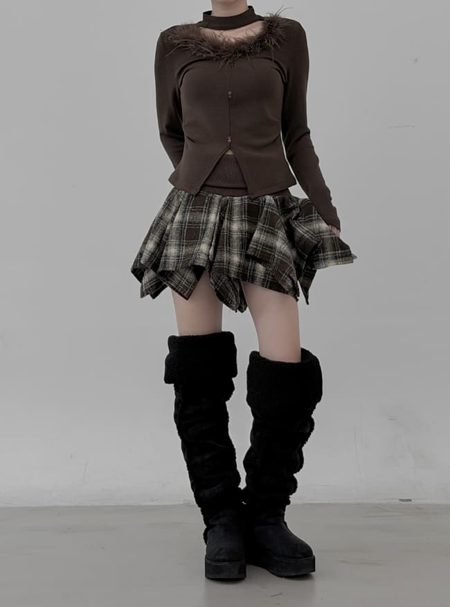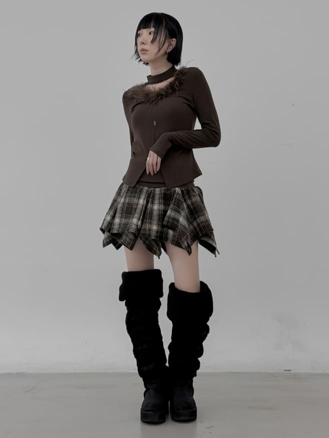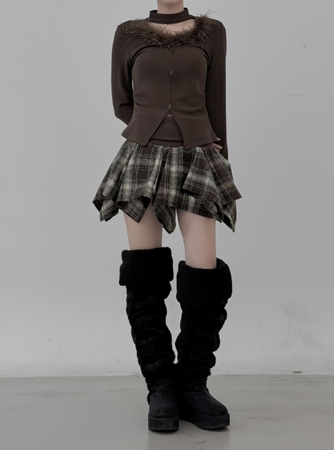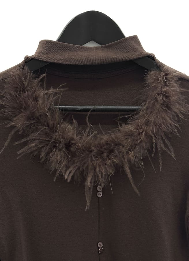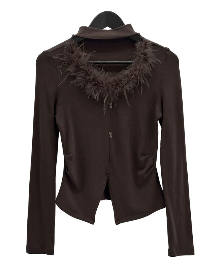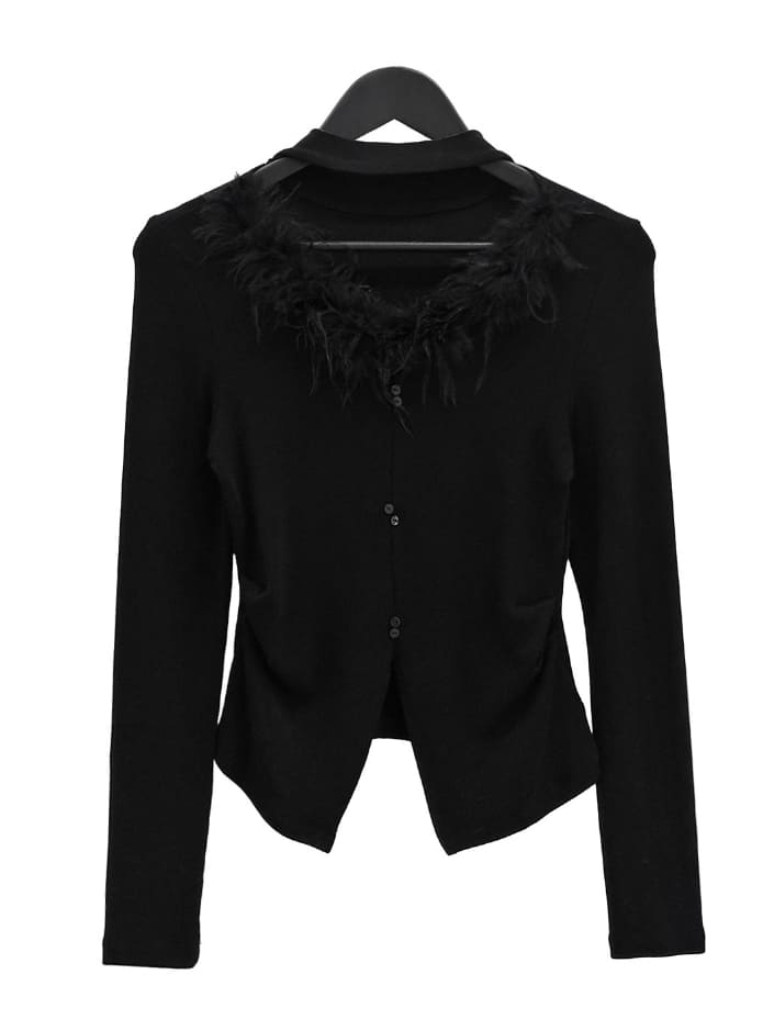 Marie Fur Trimmed Choker Long Sleeve Top