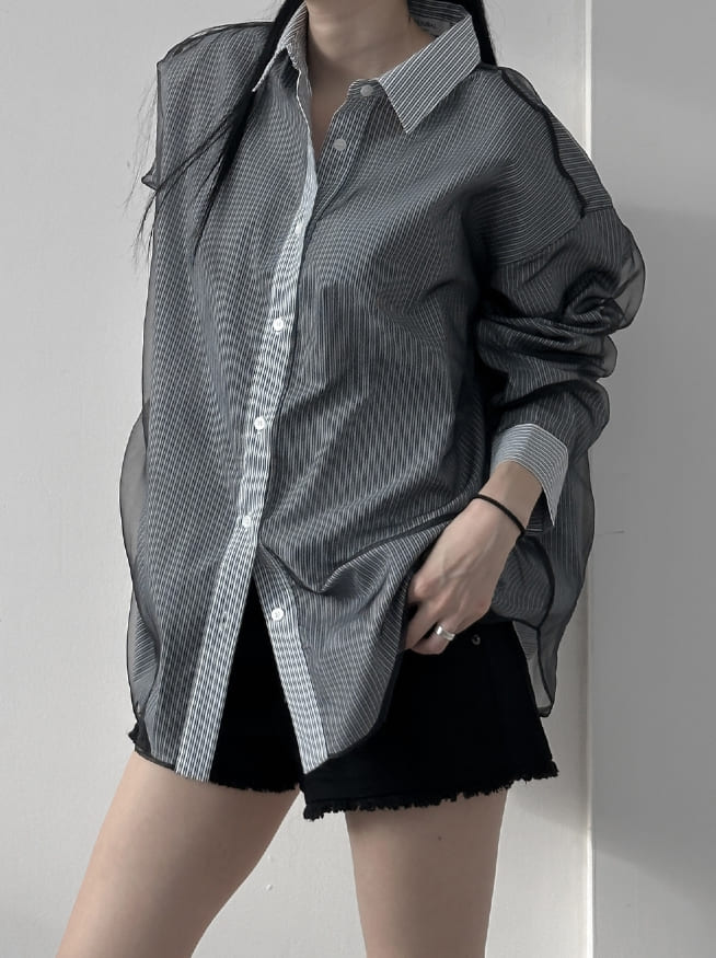 Mesh Stripe Overfit Shirt