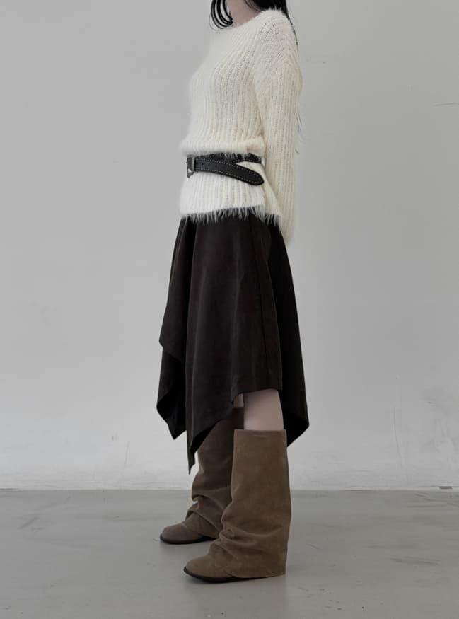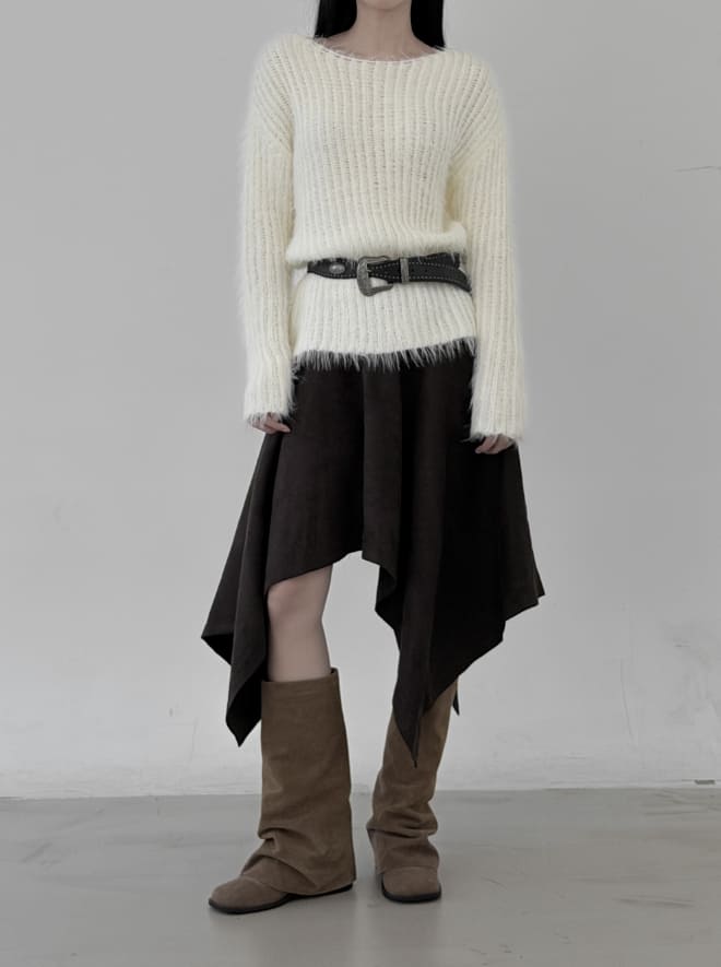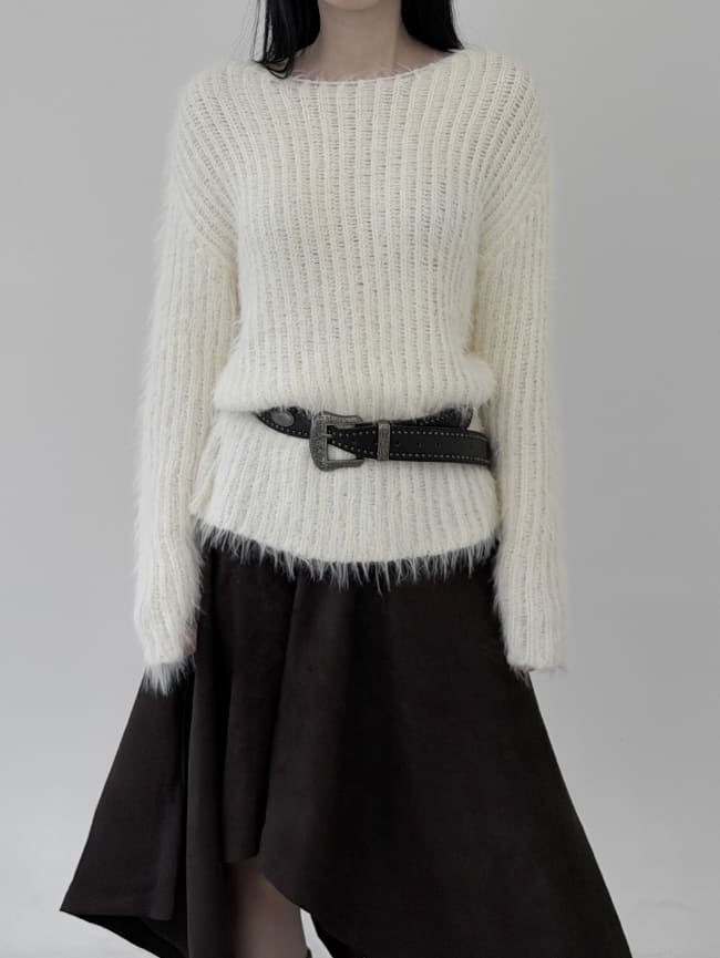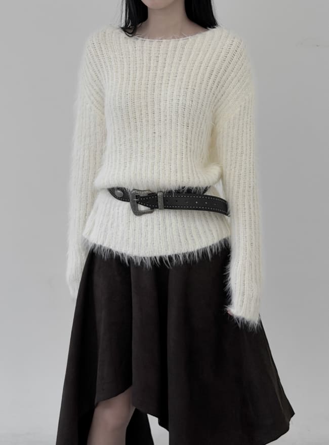ミニマルボートネック長袖ニット